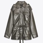 کت جلوبسته با یقه کلپا و آستینهای بلند که دارای نوار است. این کت دارای جیبهای پوشیده در جلو و کمربند از همان جنس است. همچنین دارای آستر داخلی میباشد. جلوی کت با زیپ و دکمههای مخفی بسته میشود.