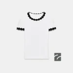 - Pamuk karışımlı iplikten üretilmiş t-shirt. Bisiklet yaka ve kısa kollu. Çiçek şeklinde kontrast detaylı aksesuar.