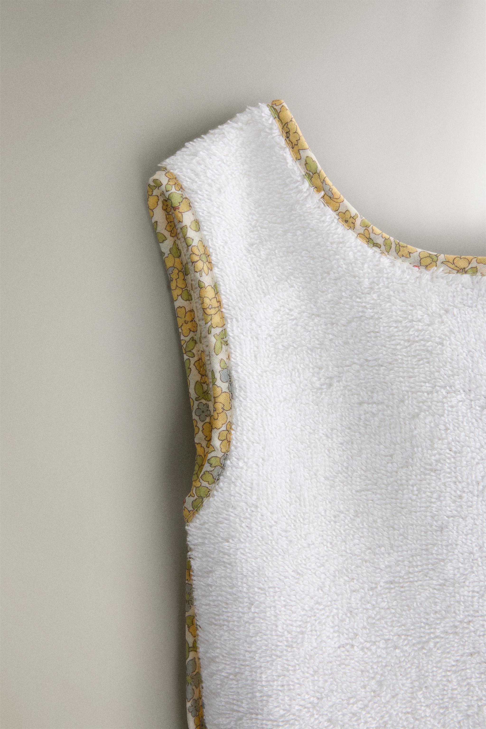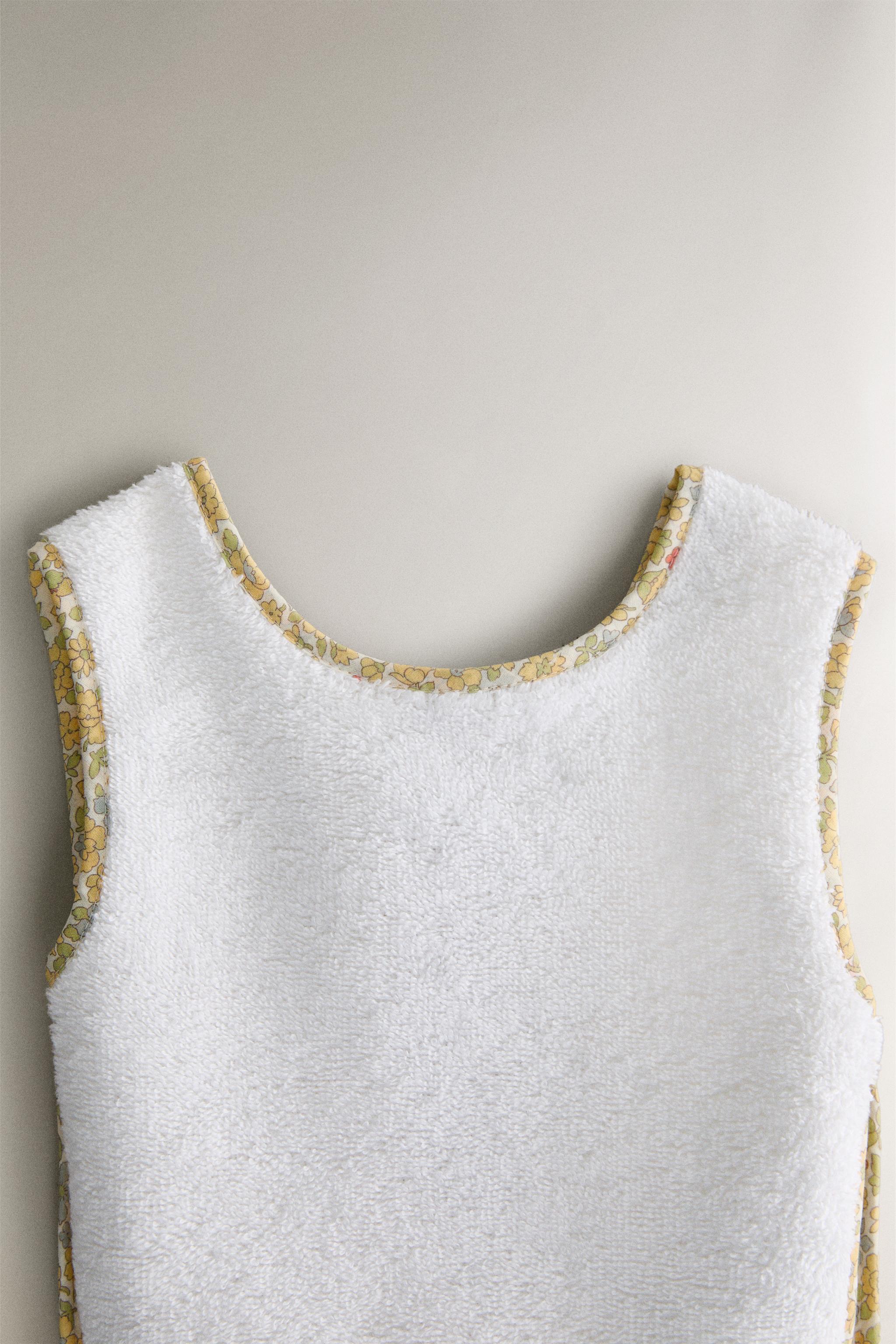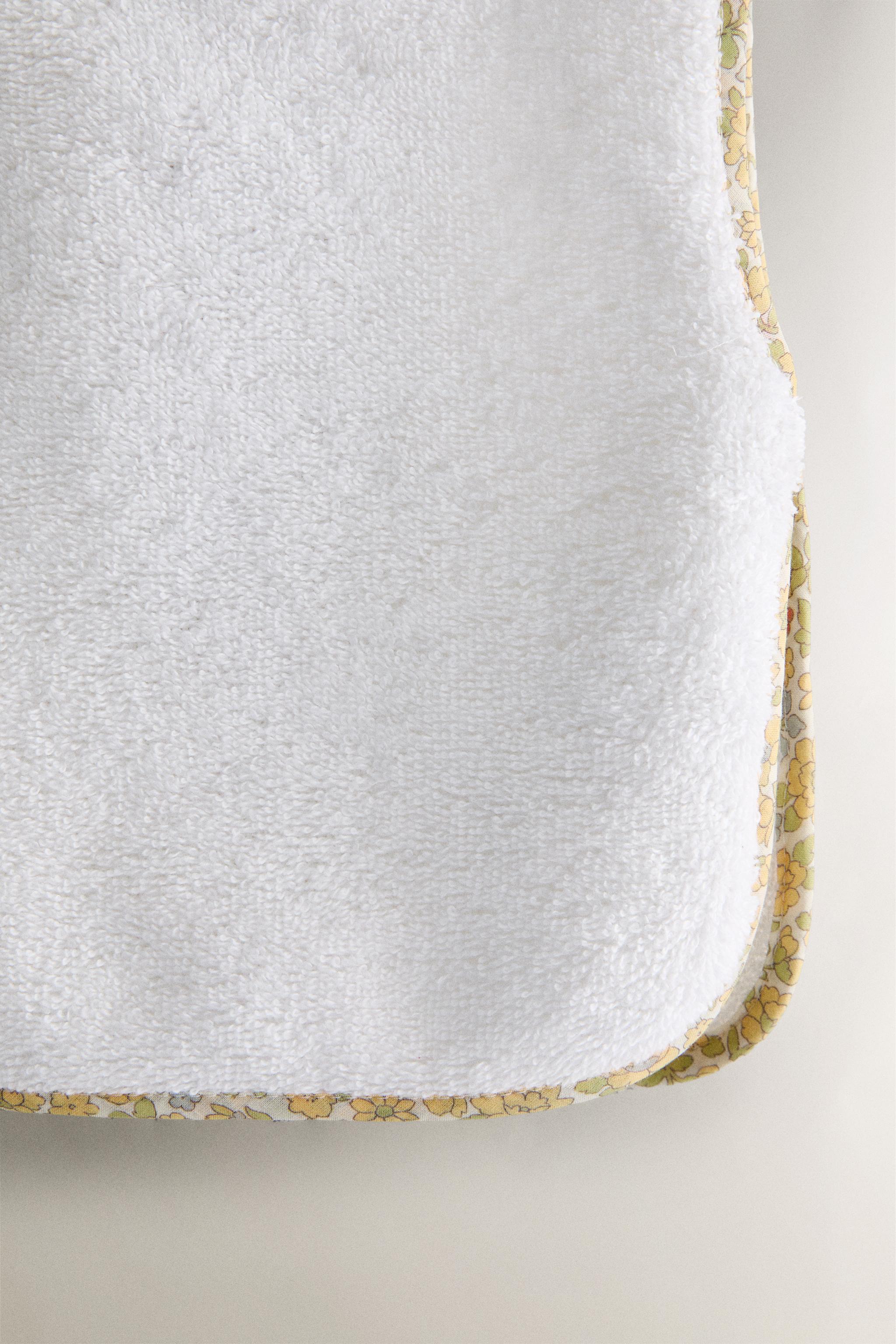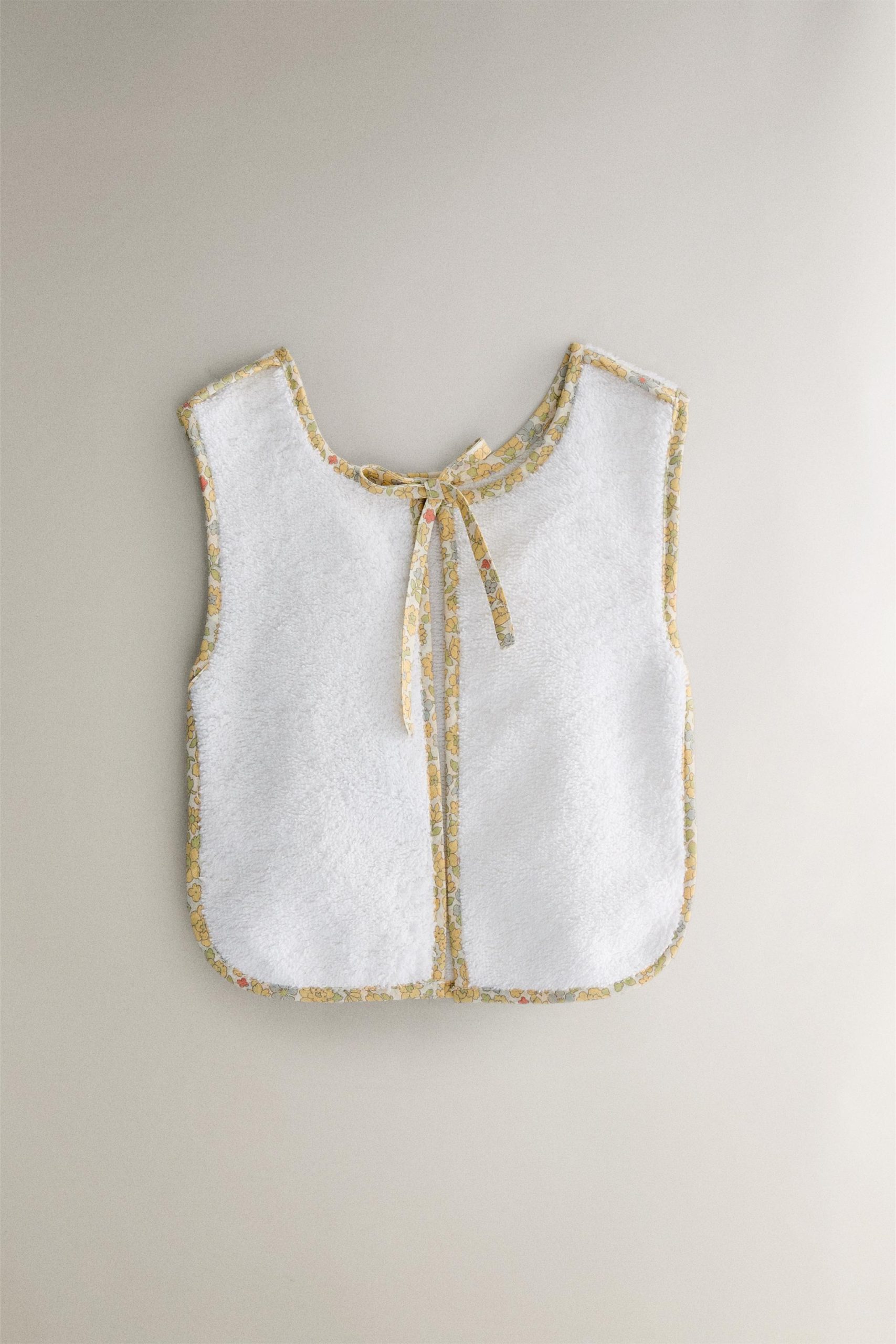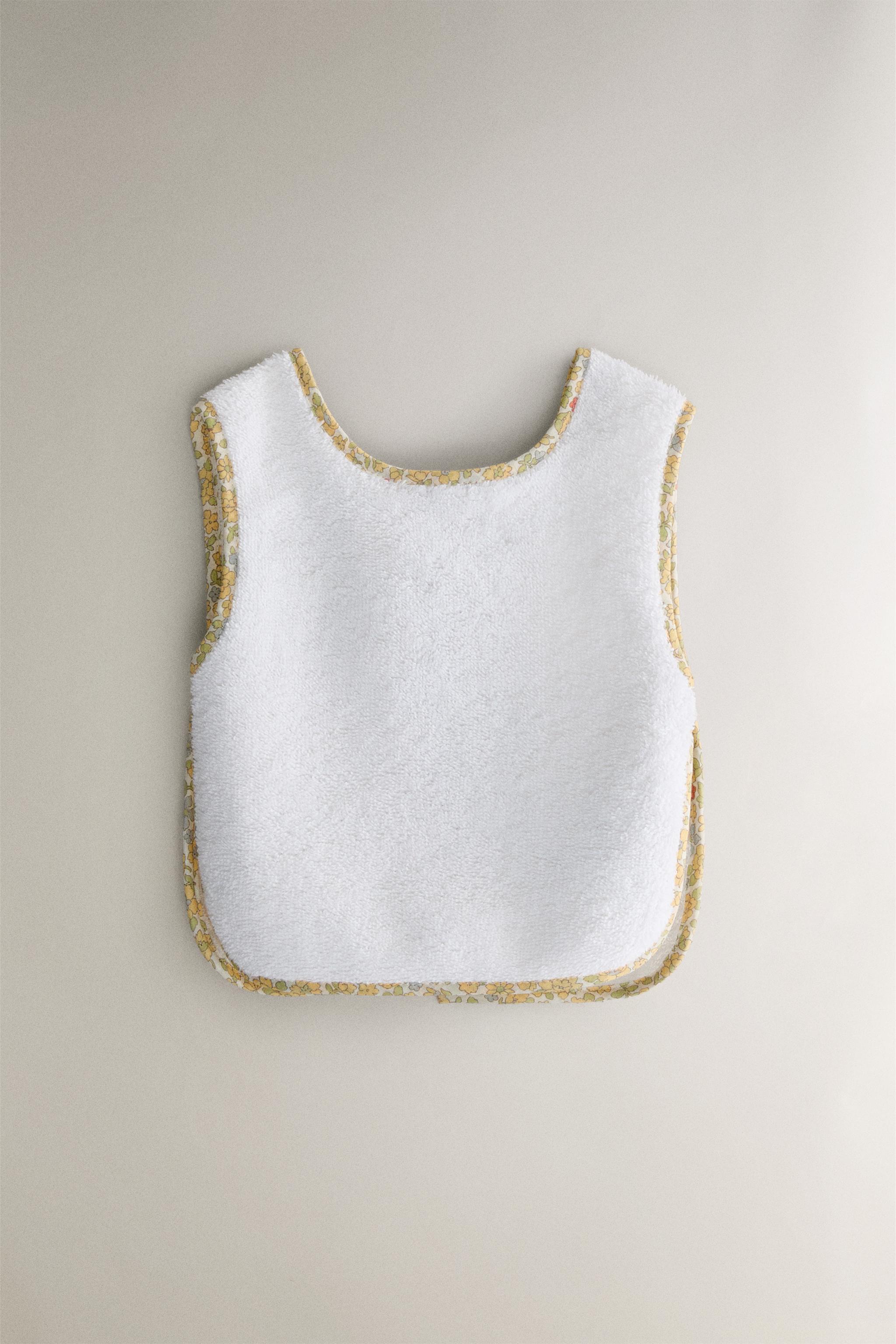 یقهدار و پیشبند نوزاد از جنس مینی حولهای پنبهای با حاشیه گلدار.