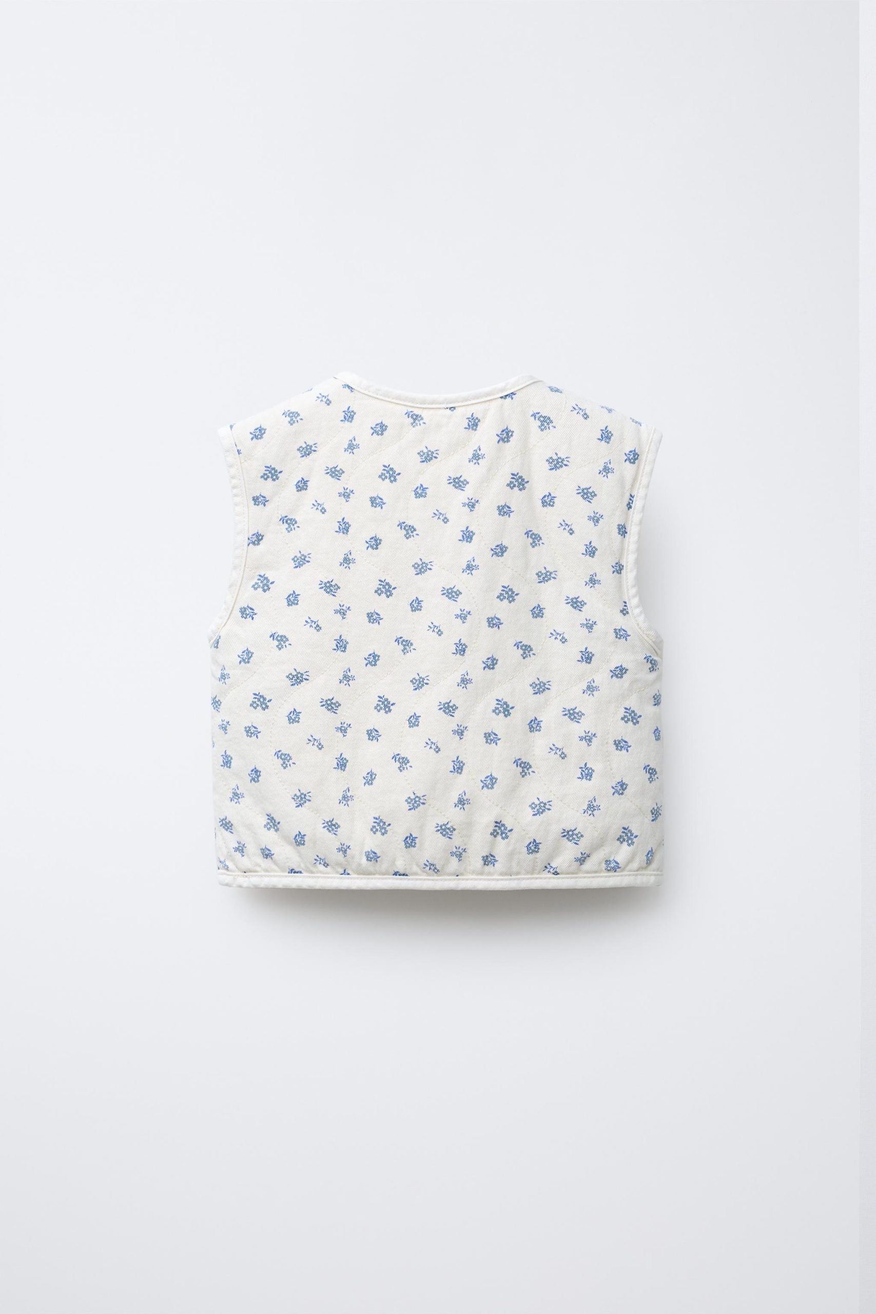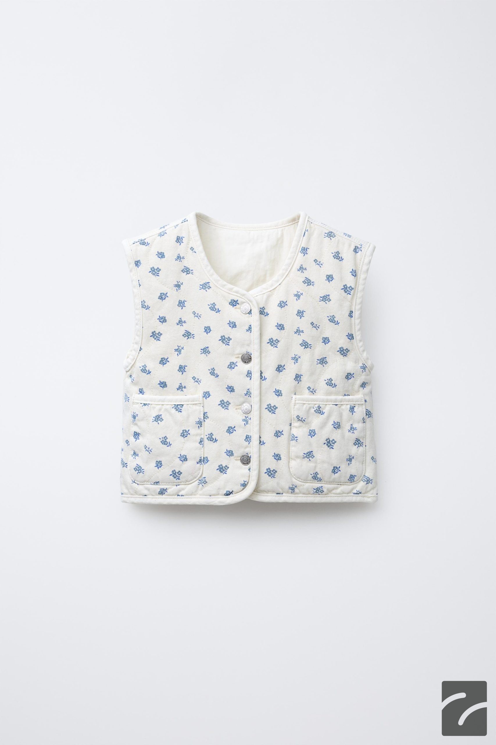 Bisiklet yaka, kolsuz yelek. Önü çıtçıtlı kapamalı. Ön kısımda yama cepli. Çiçek desenli.