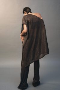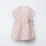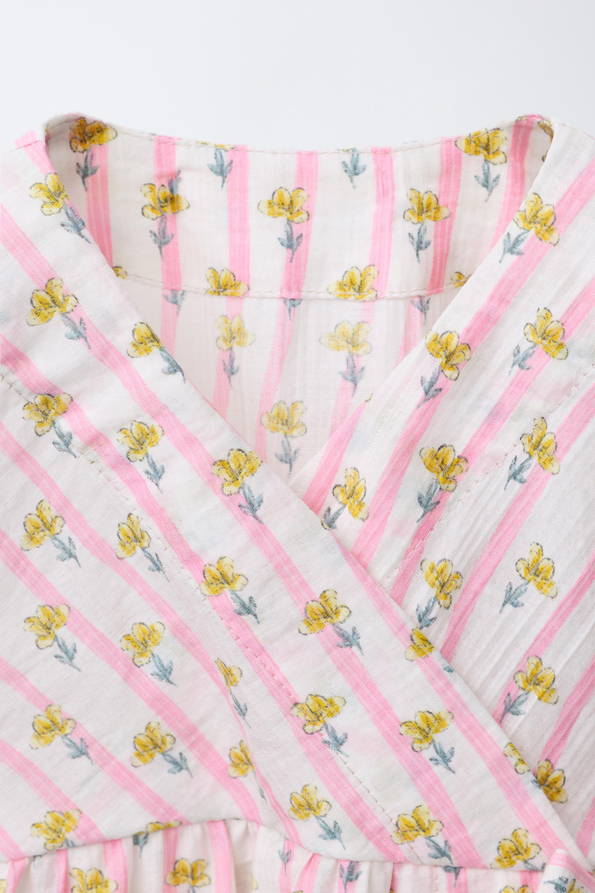 پیراهن کوتاهکُر V یقه، با بند و بسته شدن کراواتی. طرح گلدار.