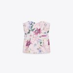 بلوز با یقه کالپ و شانه‌های پایین. دارای جزئیات کمربند با بند در همان رنگ. قسمت پشتی با زیپ مخفی در داخل دوخته شده است.