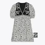 پیراهن یقهدار و کوتاهکُر با جزئیات گلدوزی و دکمهدار در قسمت جلو، همراه با جزئیات یقهدار. دارای آستر داخلی.
