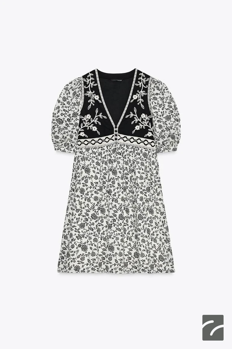 - V yaka ve kısa kollu elbise. İşlemeler ve ön kısmı düğmeli, kombin yelek detaylı. İç astarı mevcut.