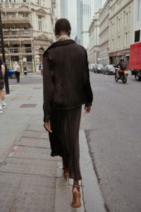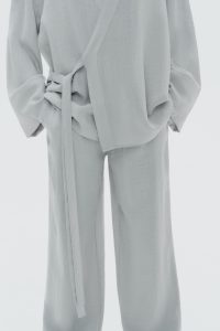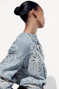 - Bisiklet yaka, uzun kollu ceket. Önden düğmeli. Çiçek desenli ve içi aynı tonda astarlı.