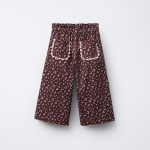 - Elastik belli pantolon. Önü dantel aplikeli yama cepli. Çiçek desenli.