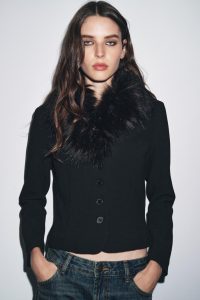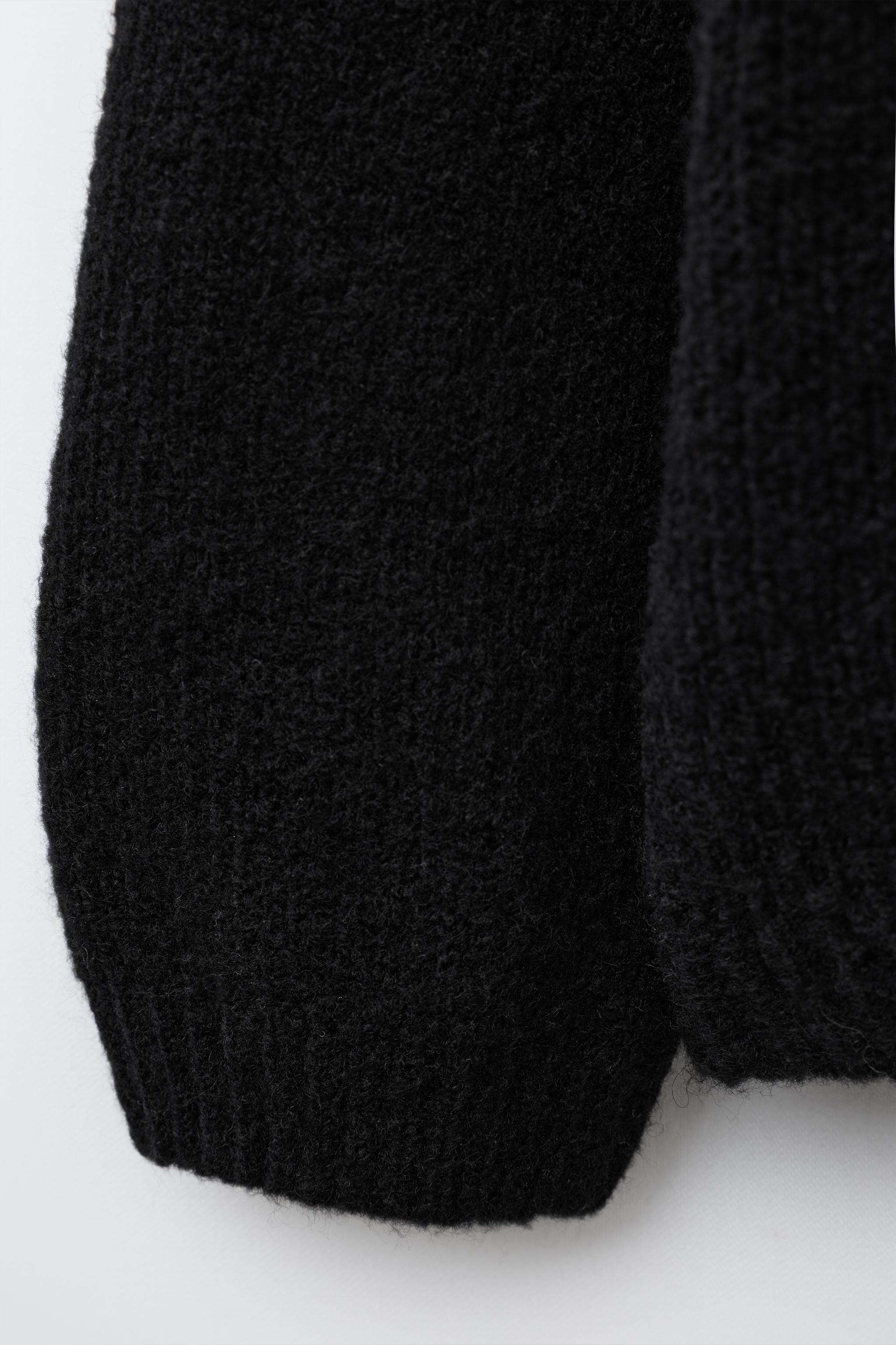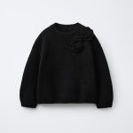- Bisiklet yaka, uzun kollu triko kazak. Ön kısımda çiçek aplikeler bulunur.