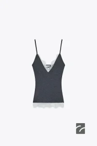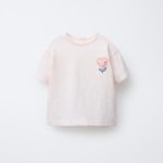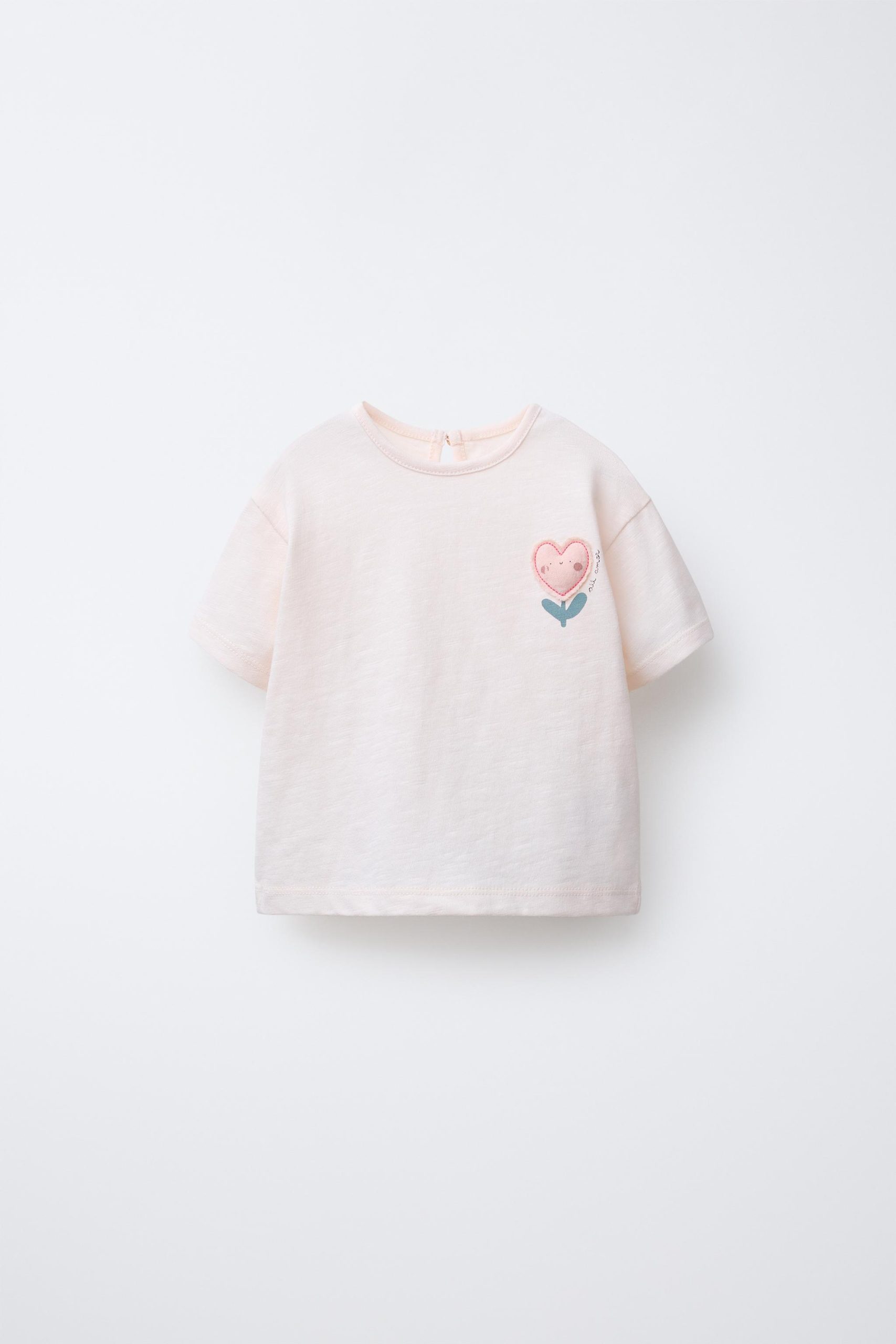 تیشرت یقه گرد و آستین کوتاه با دکمهای در پشت و برشهای کناری. در قسمت سینه، یک وصله تزئینی طراحی شده است.