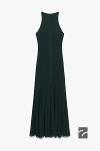 پیراهن دو قلویی با یقه، آستین بلند و دکمهدار از جلو. طرح راهراه.