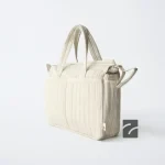 ست کیف مادر با طرح راهراه. شامل کیف آرایش مناسب و زیرانداز تعویض. داخل آن با جزئیات طرح ستارهای تزئین شده است. کیف راهراه: دارای یک بخش اصلی با زیپ. دو جیب جلو و دو جیب کناری. شامل دو نوار چسبی برای اتصال به صندلی خودرو. دارای دو دسته برای حمل. کیف آرایش راهراه: با بسته شدن ز
