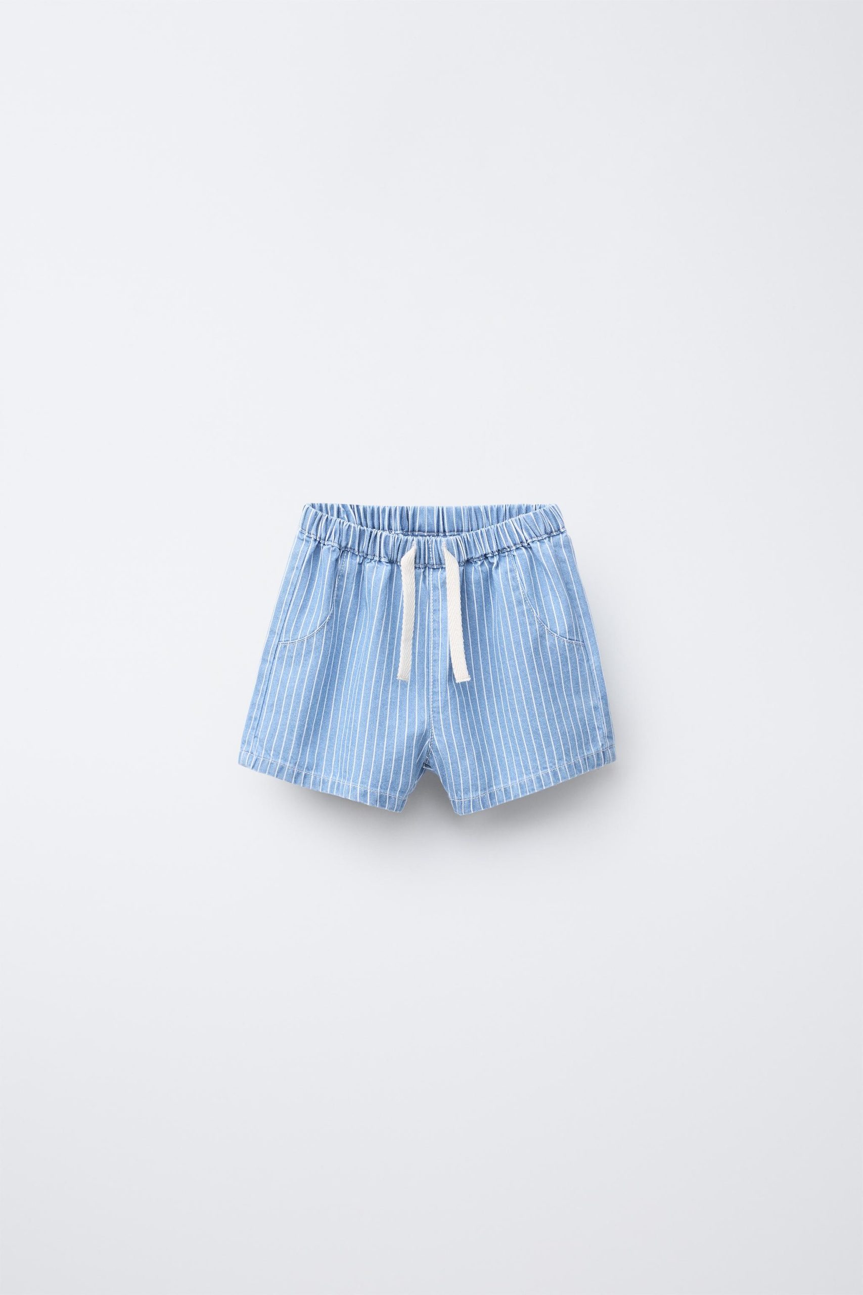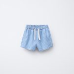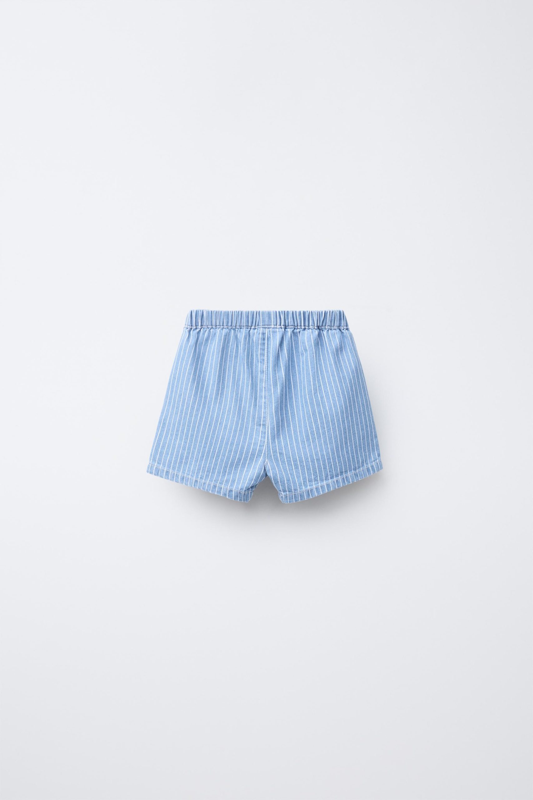 - Elastik belli ve önü bağcıklı bermuda. Çizgili baskılı.