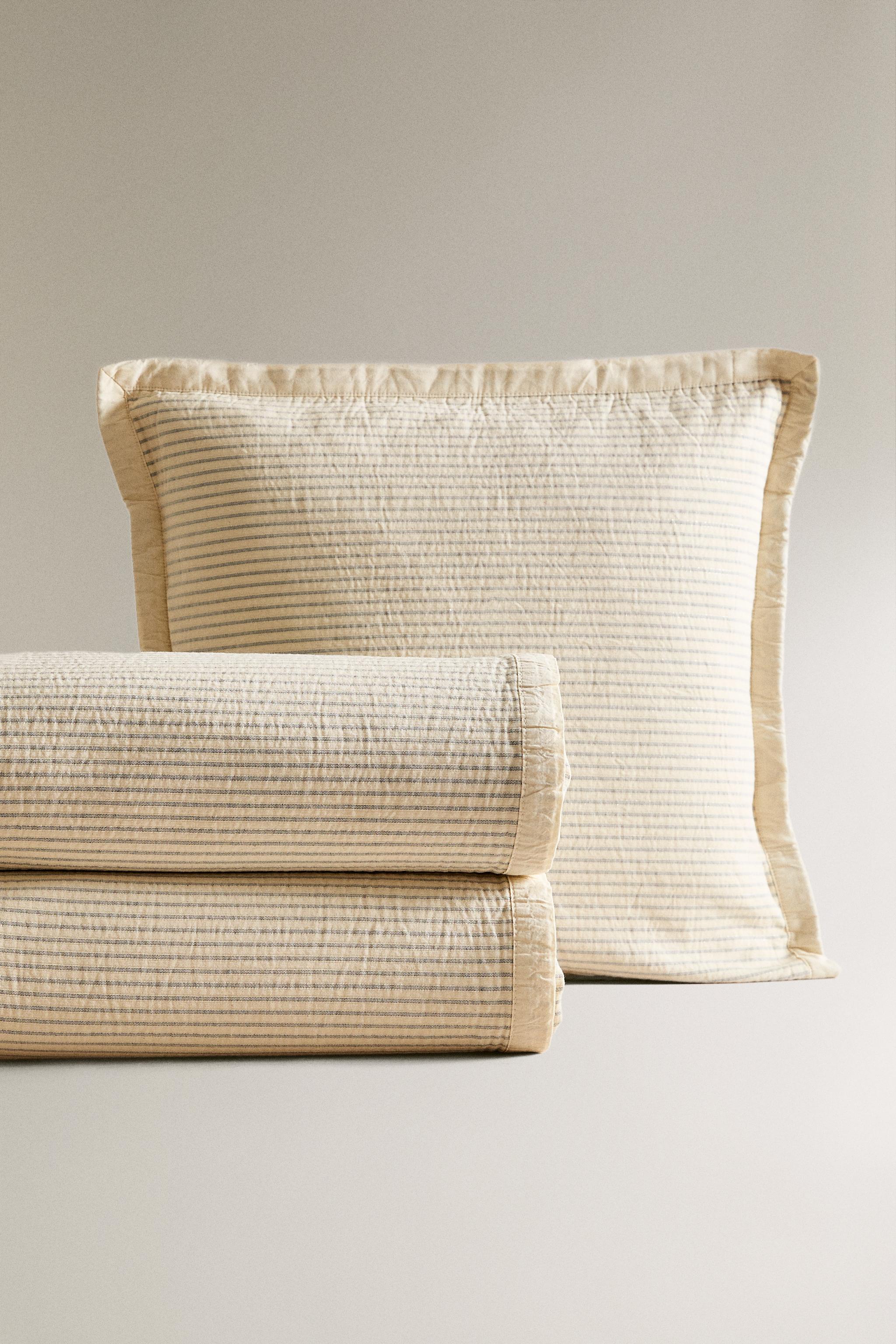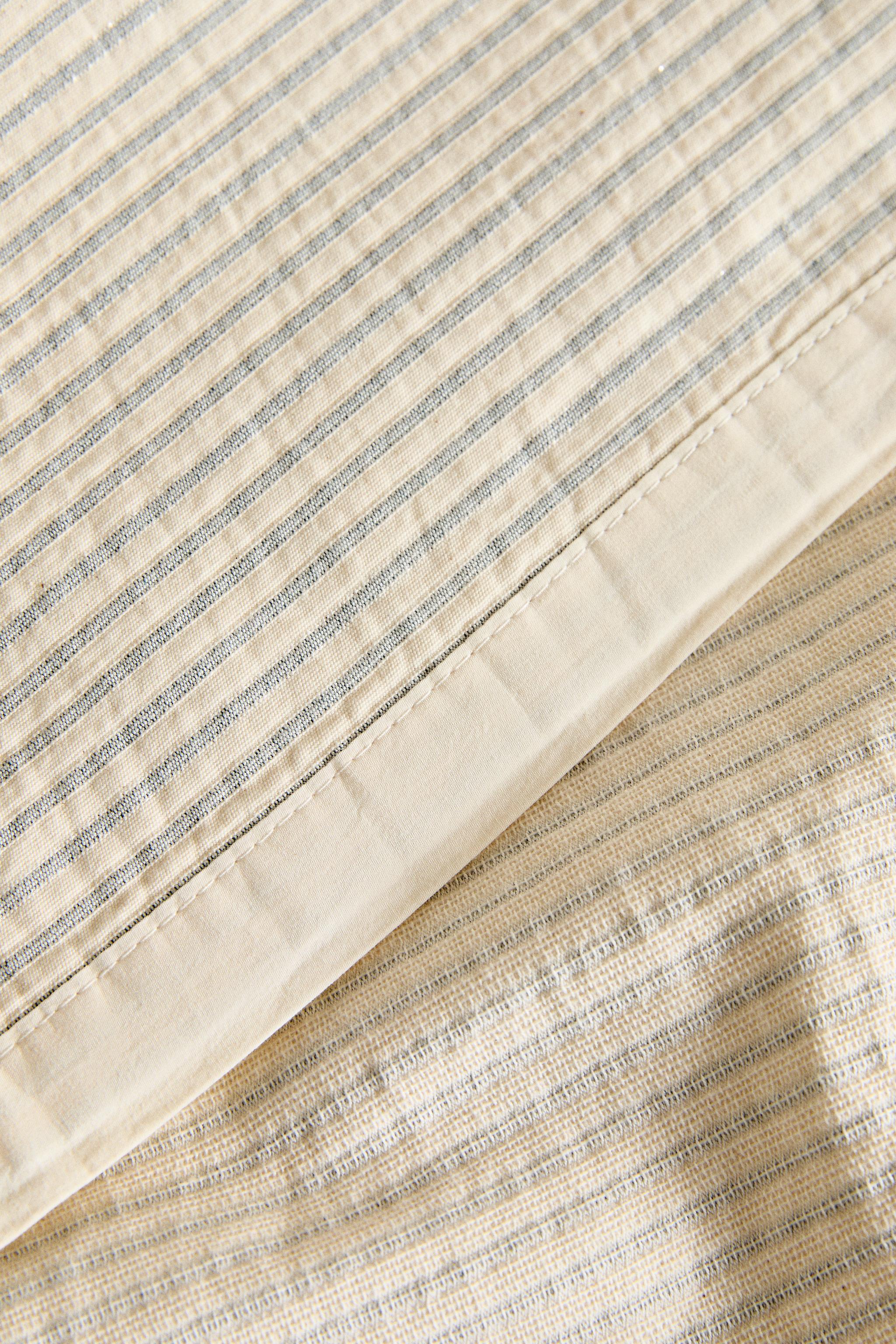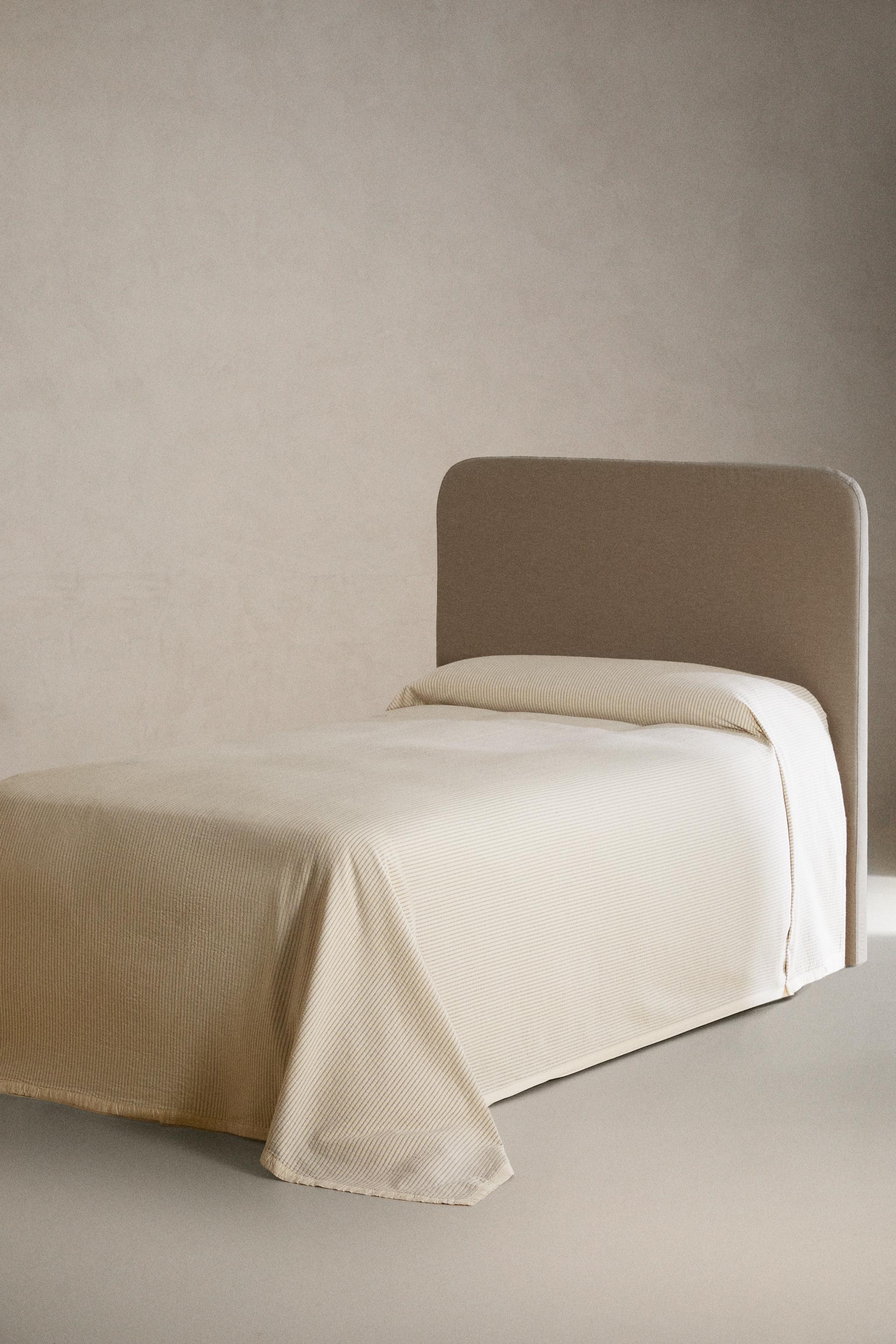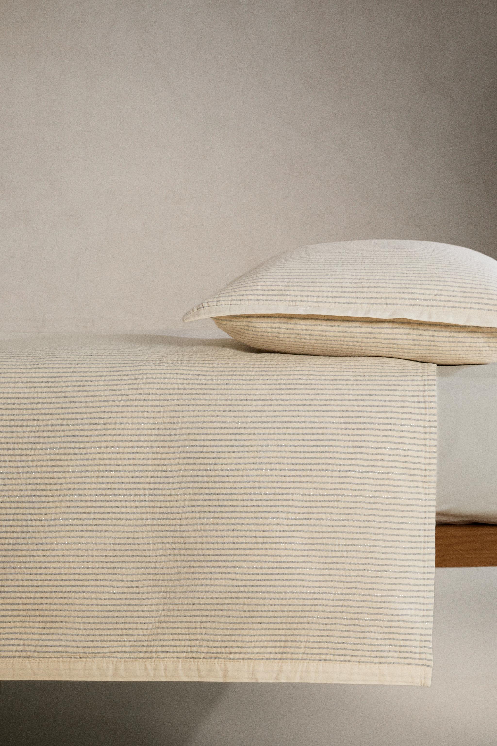 Çizgili ve metalik iplikli, pamuklu çocuk yatak örtüsü.