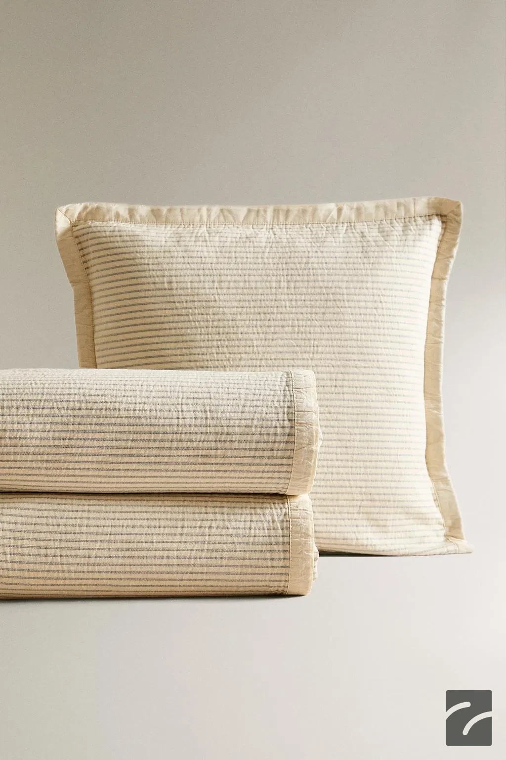 - Çizgili ve metalik iplikli, pamuklu çocuk yatak örtüsü.