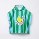 پانچوی حولهای با کلاه، دارای طرح راهراه و چاپ لیمو در قسمت جلو.