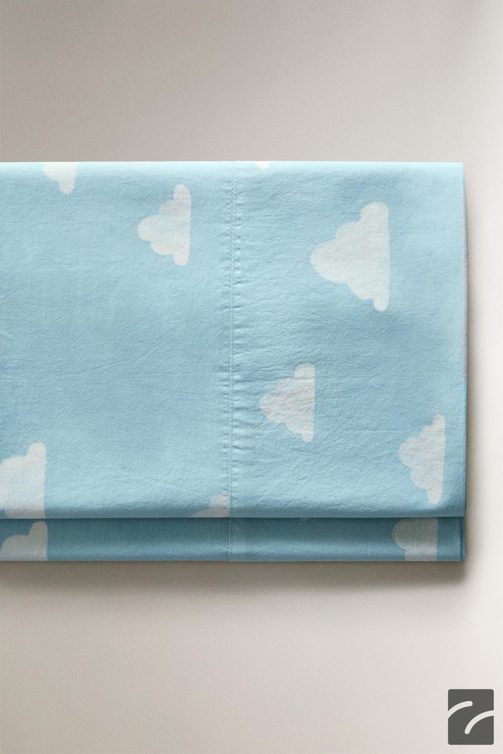 - Bulut desenli, soluk efektli, pamuklu çocuk üst çarşafı.