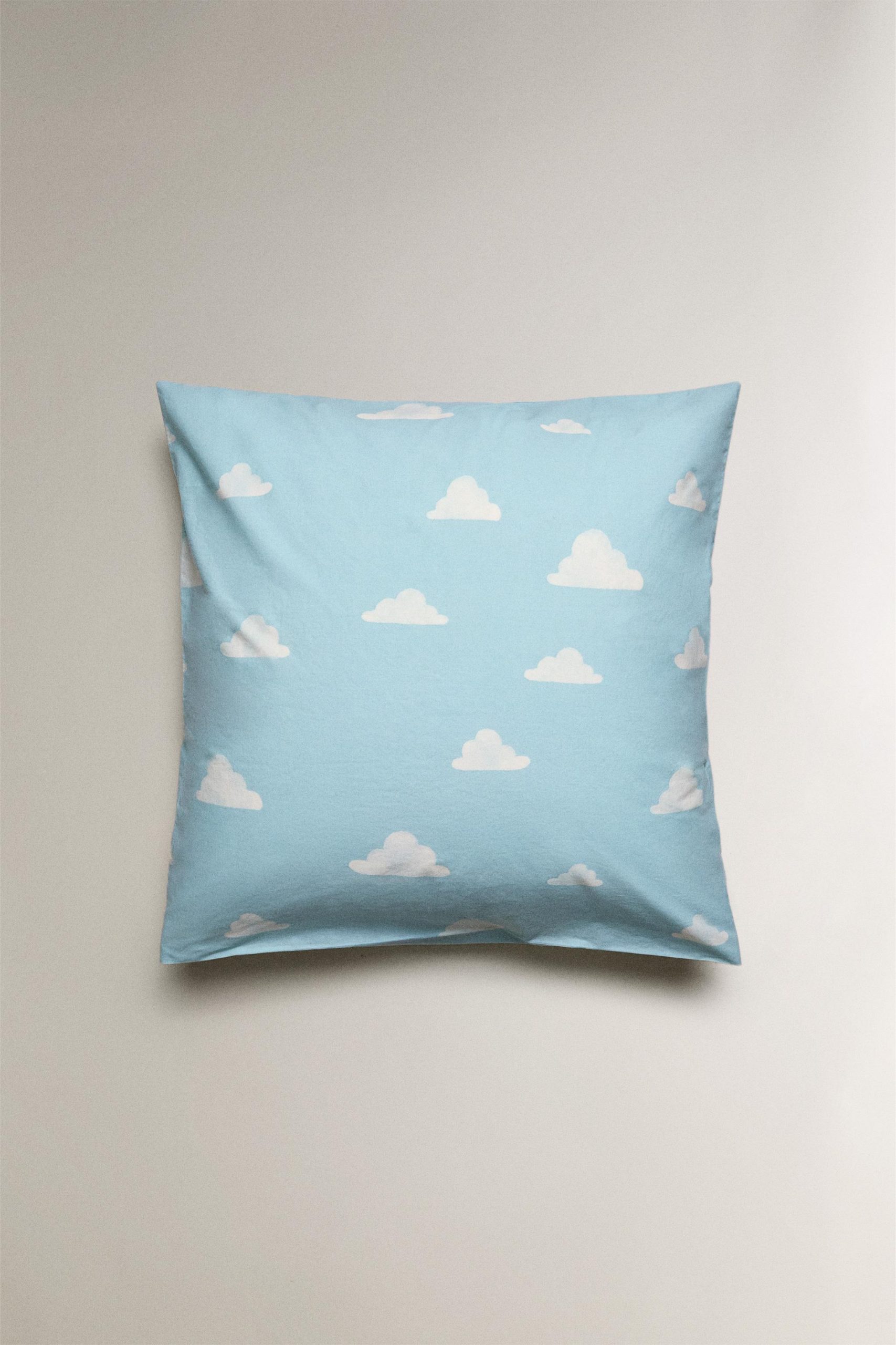 کلاهک بالش کودک از جنس پنبه با طرح ابر و افکت کمرنگ.