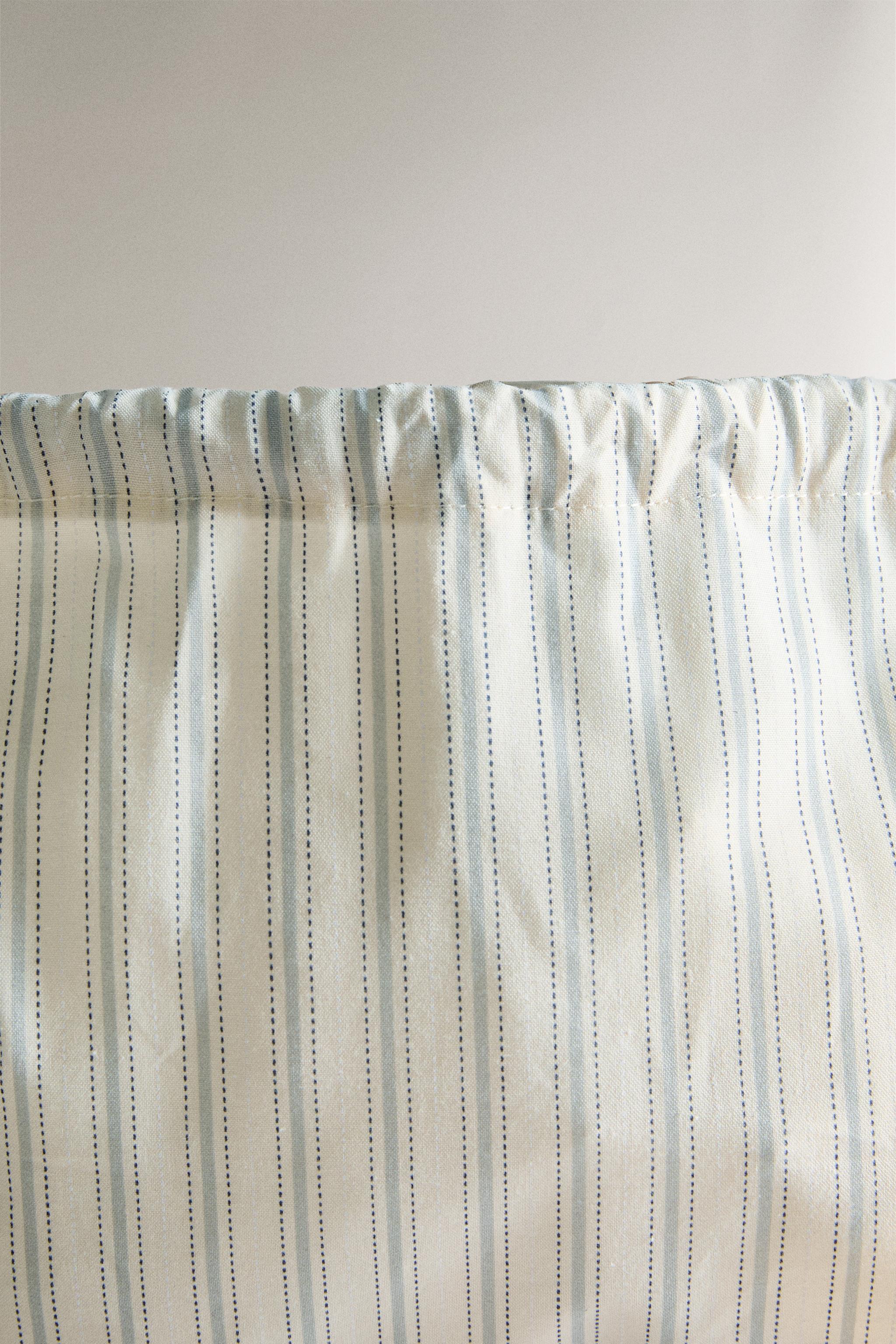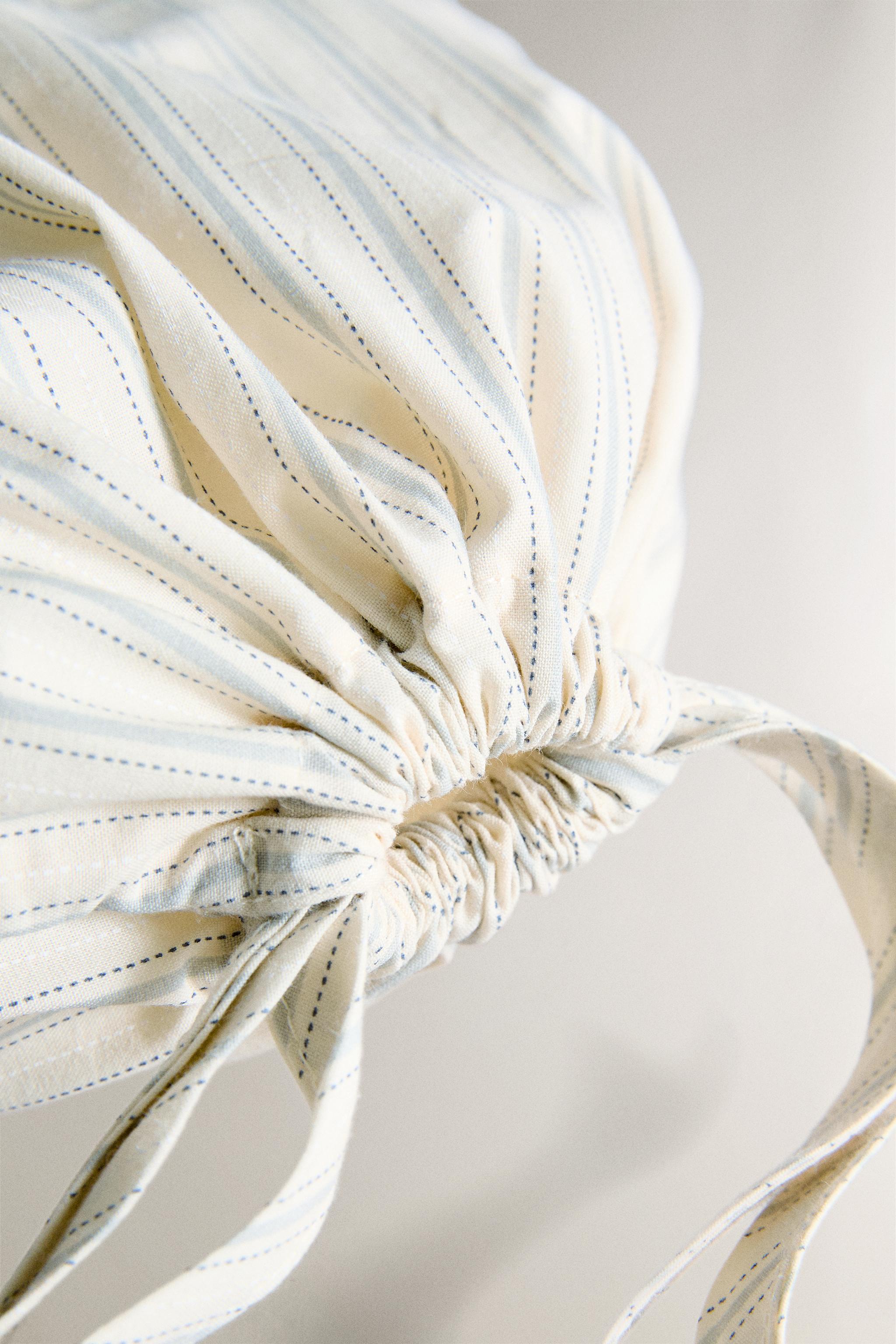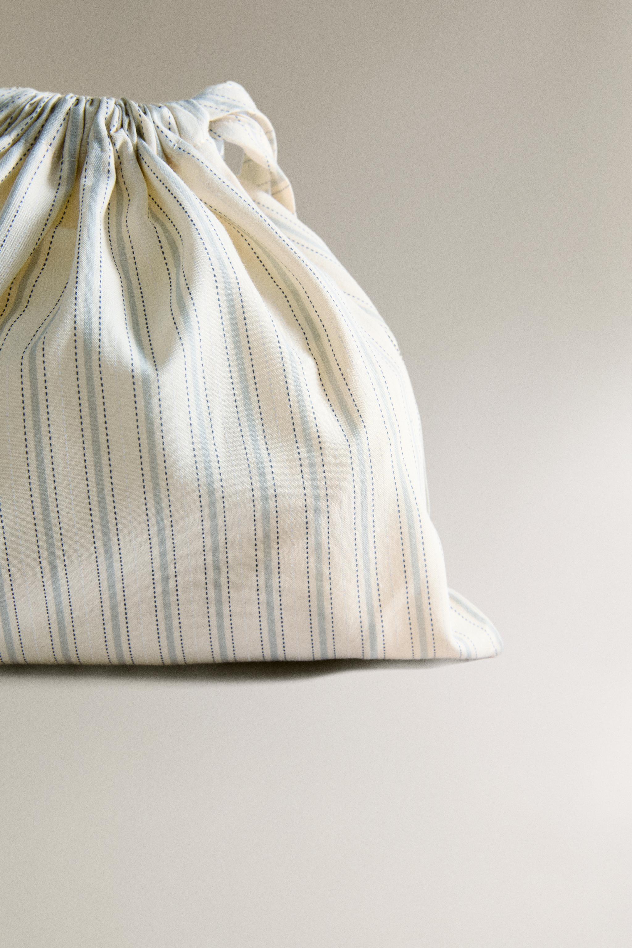 - Çocuklar için pamuklu çamaşır torbası. Çizgili tasarım. Üstü bağcıklı.
