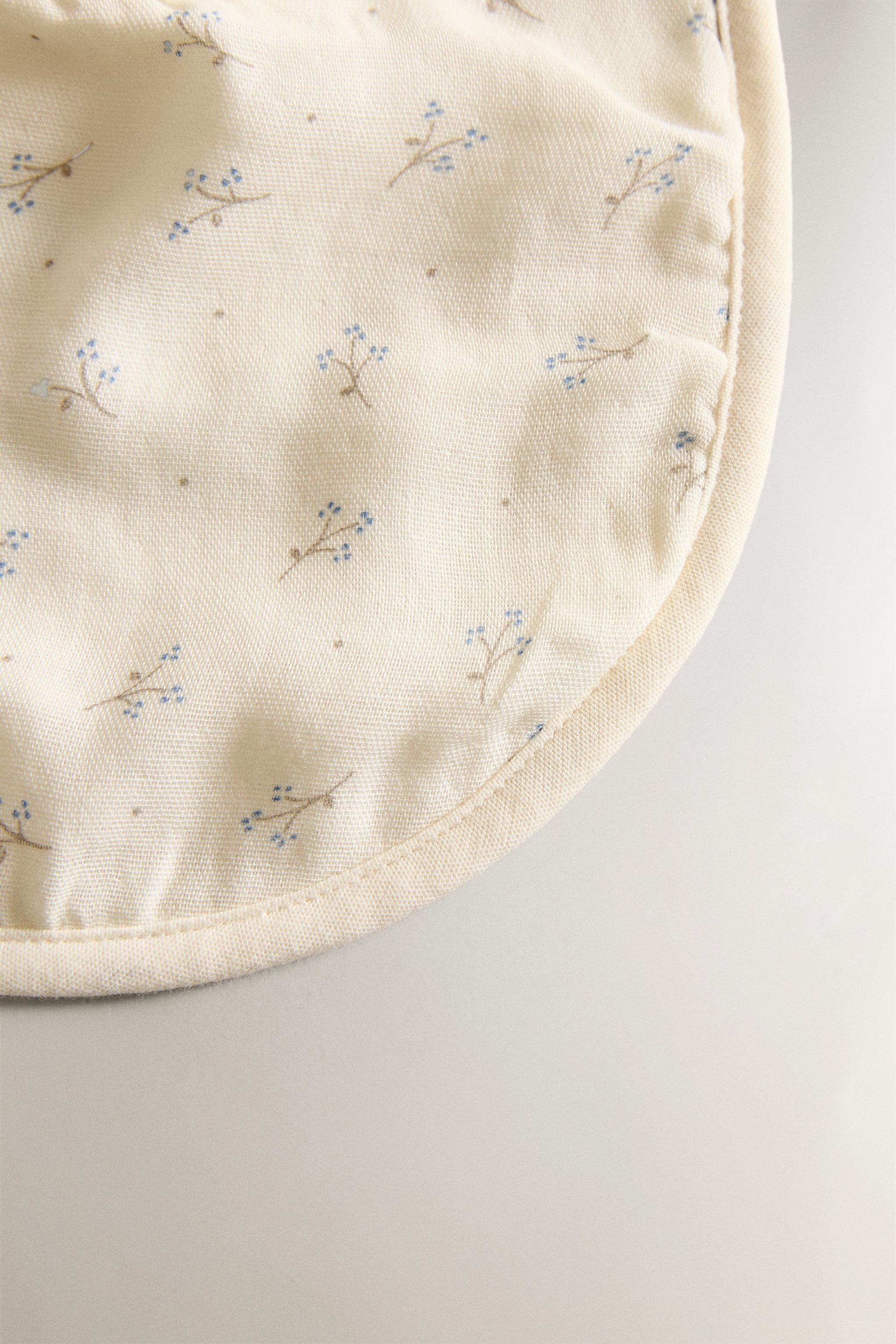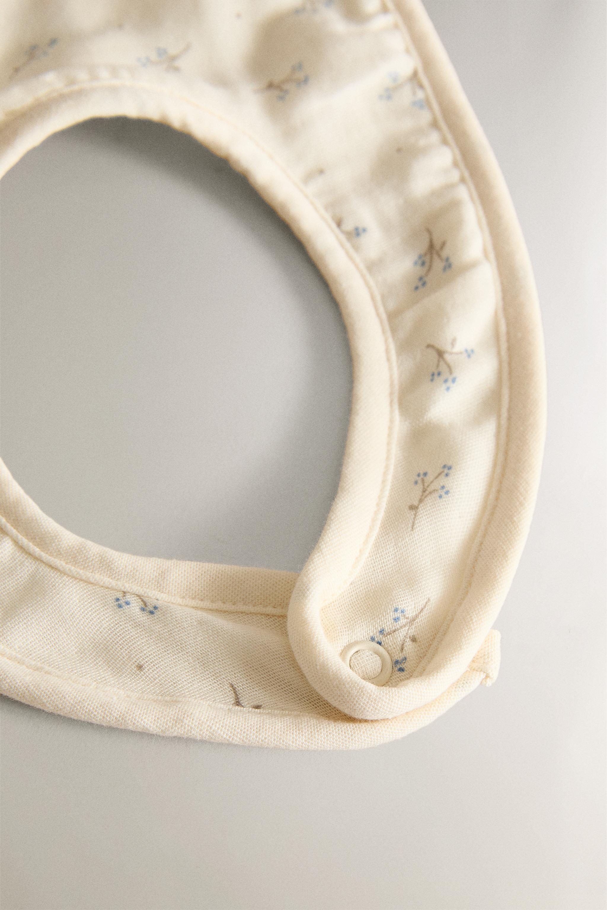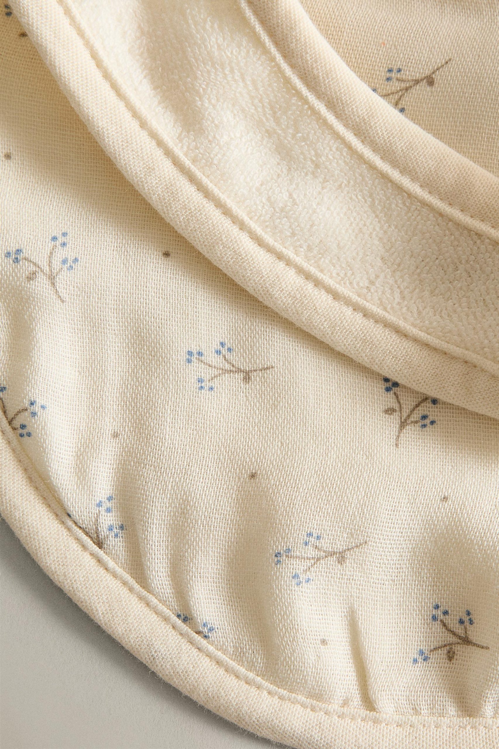 - Mini havlu pamuklu kumaş ve muslin kumaştan üretilmiş, mini çiçek desenli ve bağcıklı bebek önlüğü.