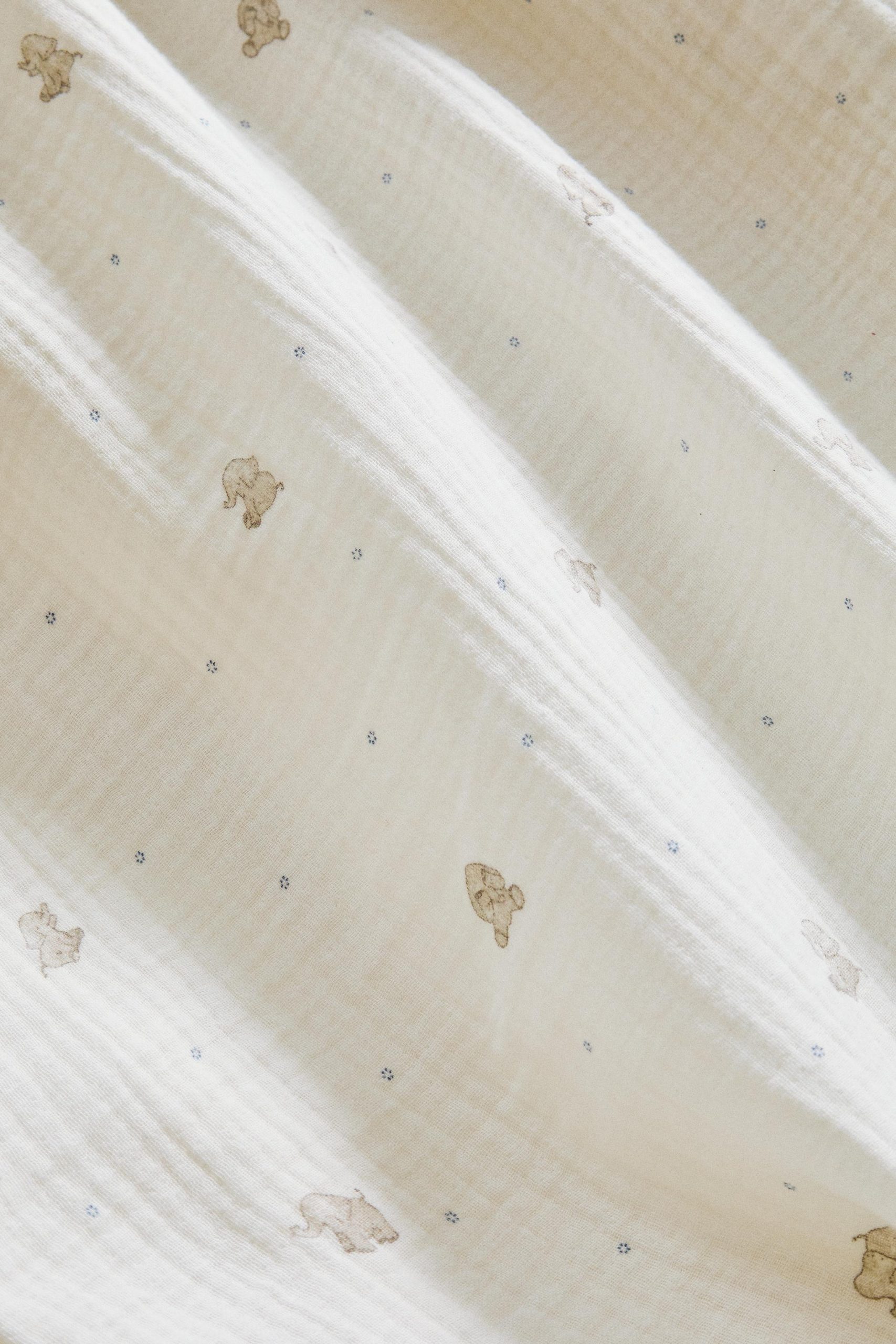 روکش تخت خواب کودک از جنس پنبه موسلین با طرح فیل. قسمت زیرین دارای دکمههای مخفی است.
