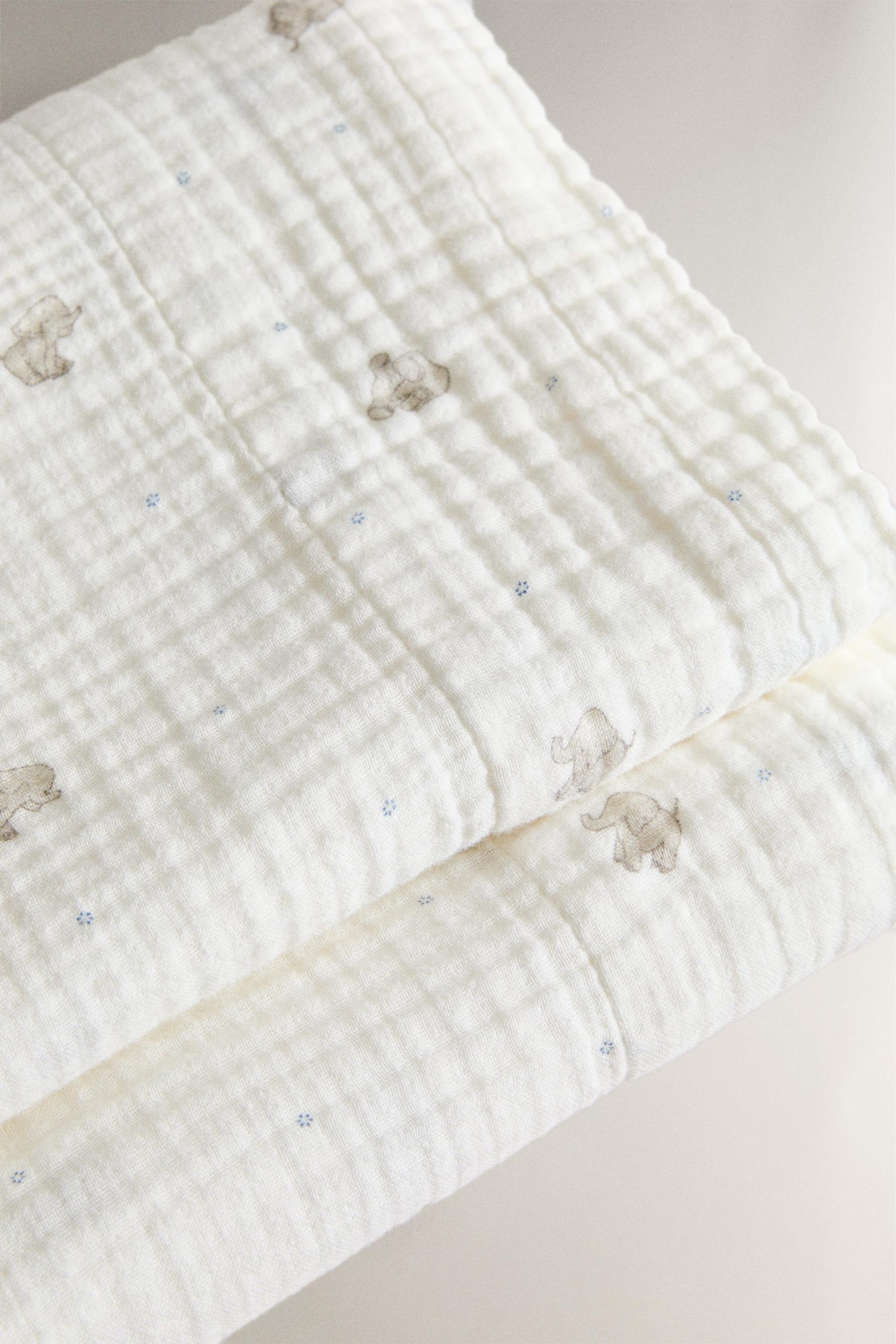 روکش بالایی کودک از جنس پنبهای موسلین با طرح فیل.