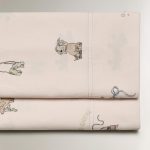 روکش تخت پنبهای با 200 رشته الیاف، دارای طرح سگ پاتنسی و جزئیات درخشان در تاریکی.