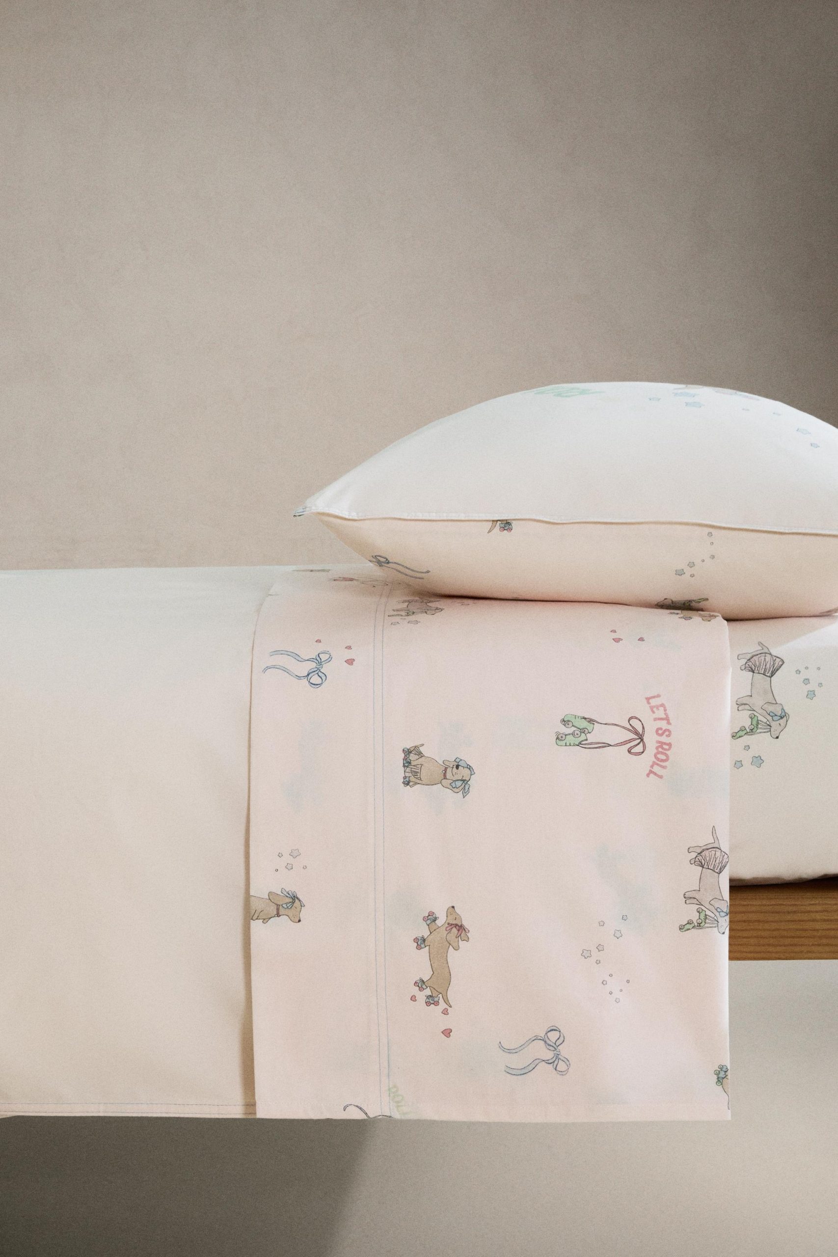 - 200 iplikli soluk efektli pamuklu üst çarşaf, patenci köpek motifli ve karanlıkta parlayan detaylı.