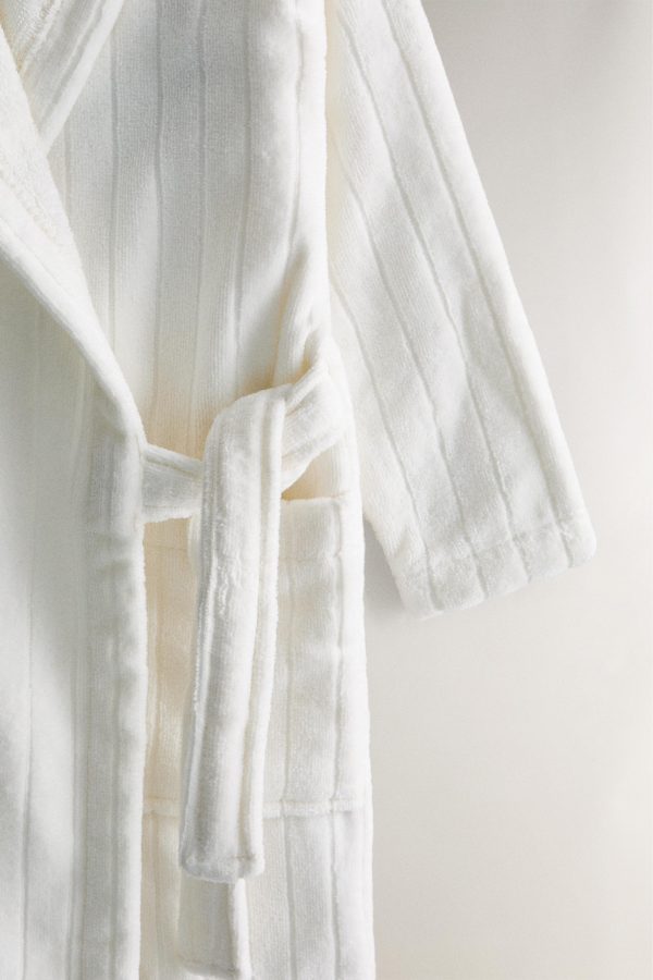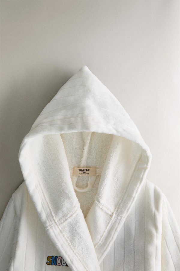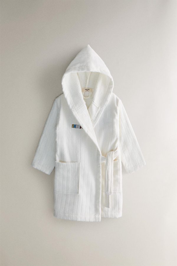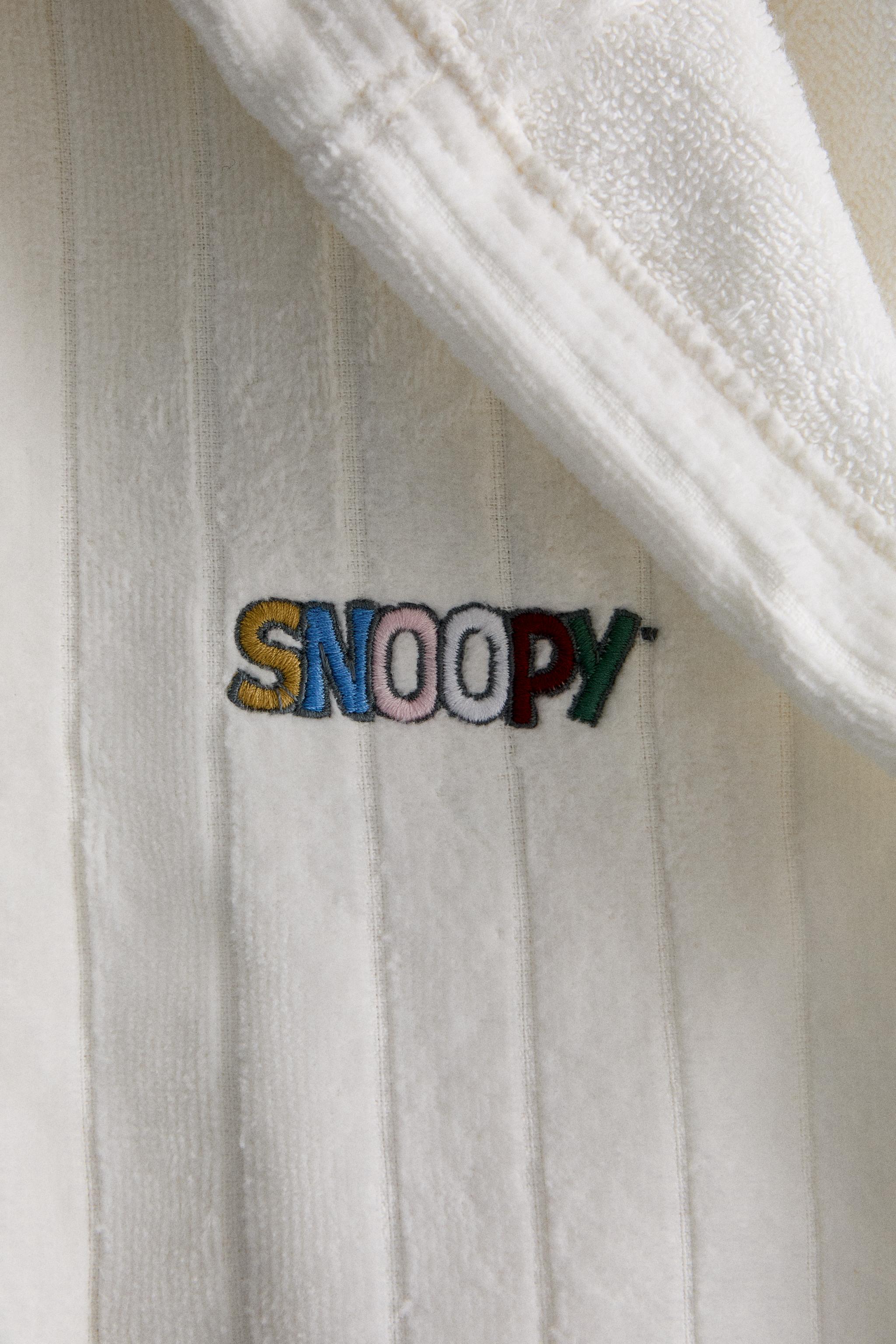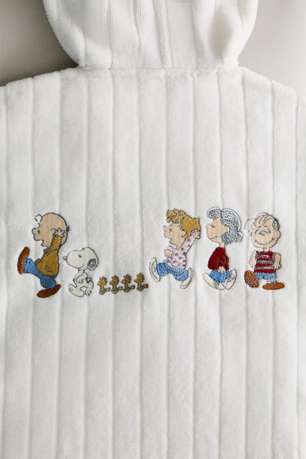 - Peanuts™ karakterleri işlemeli, çizgili, pamuklu velur çocuk bornozu.