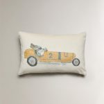 - Ortasında pilot köpek yavrusu deseni bulunan ve yumuşak dokunuşlu kırlent kılıfı.
