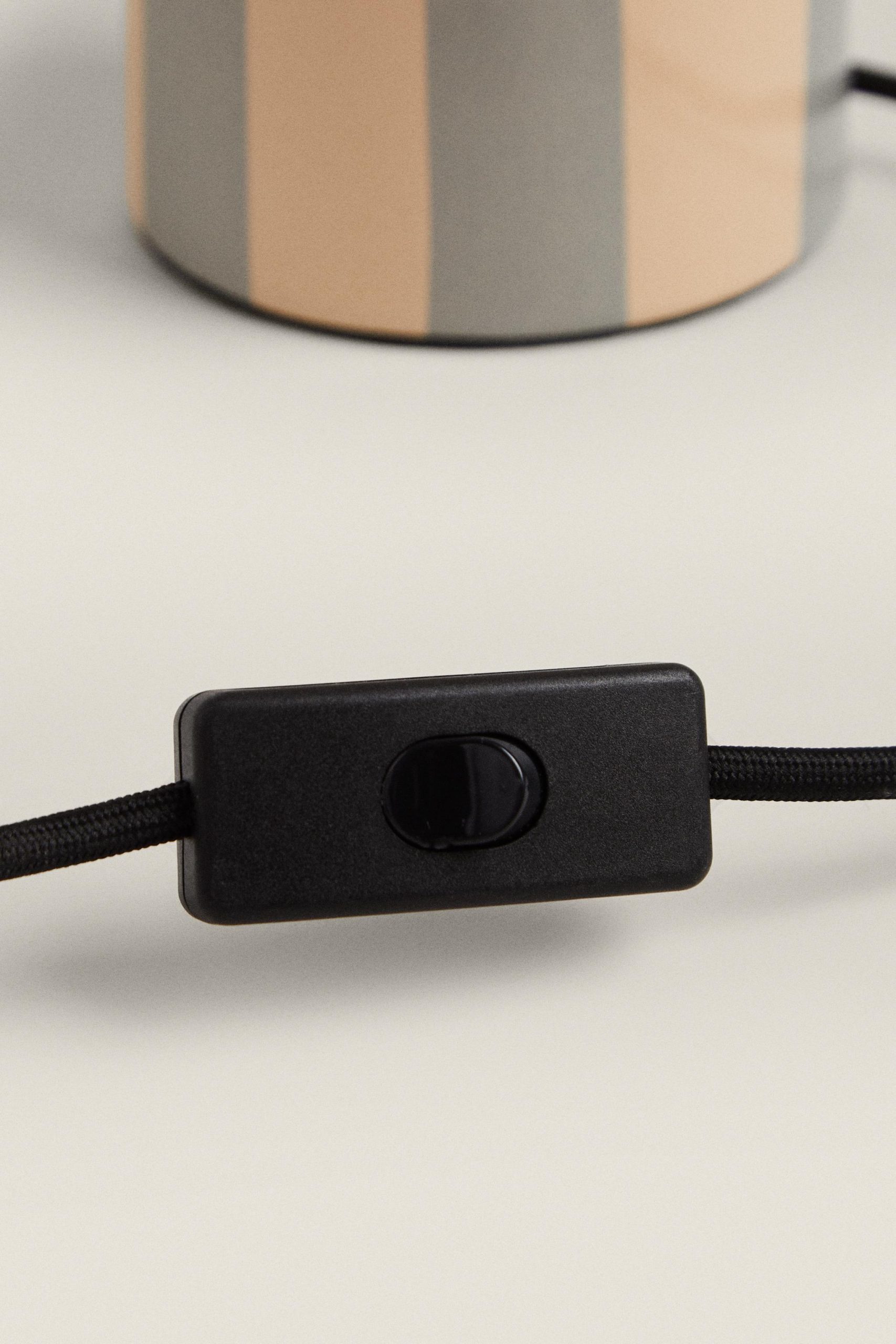 - Çocuklar için çizgili seramik tabanlı abajur. Filamanlı ampul dahildir.