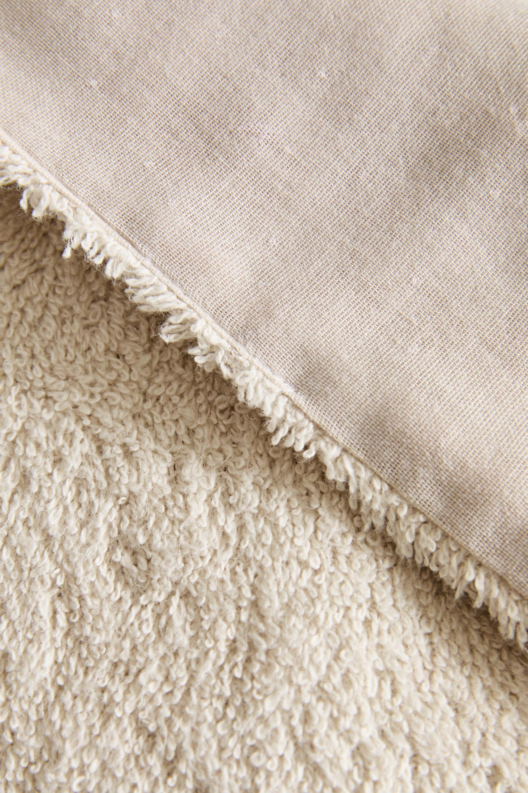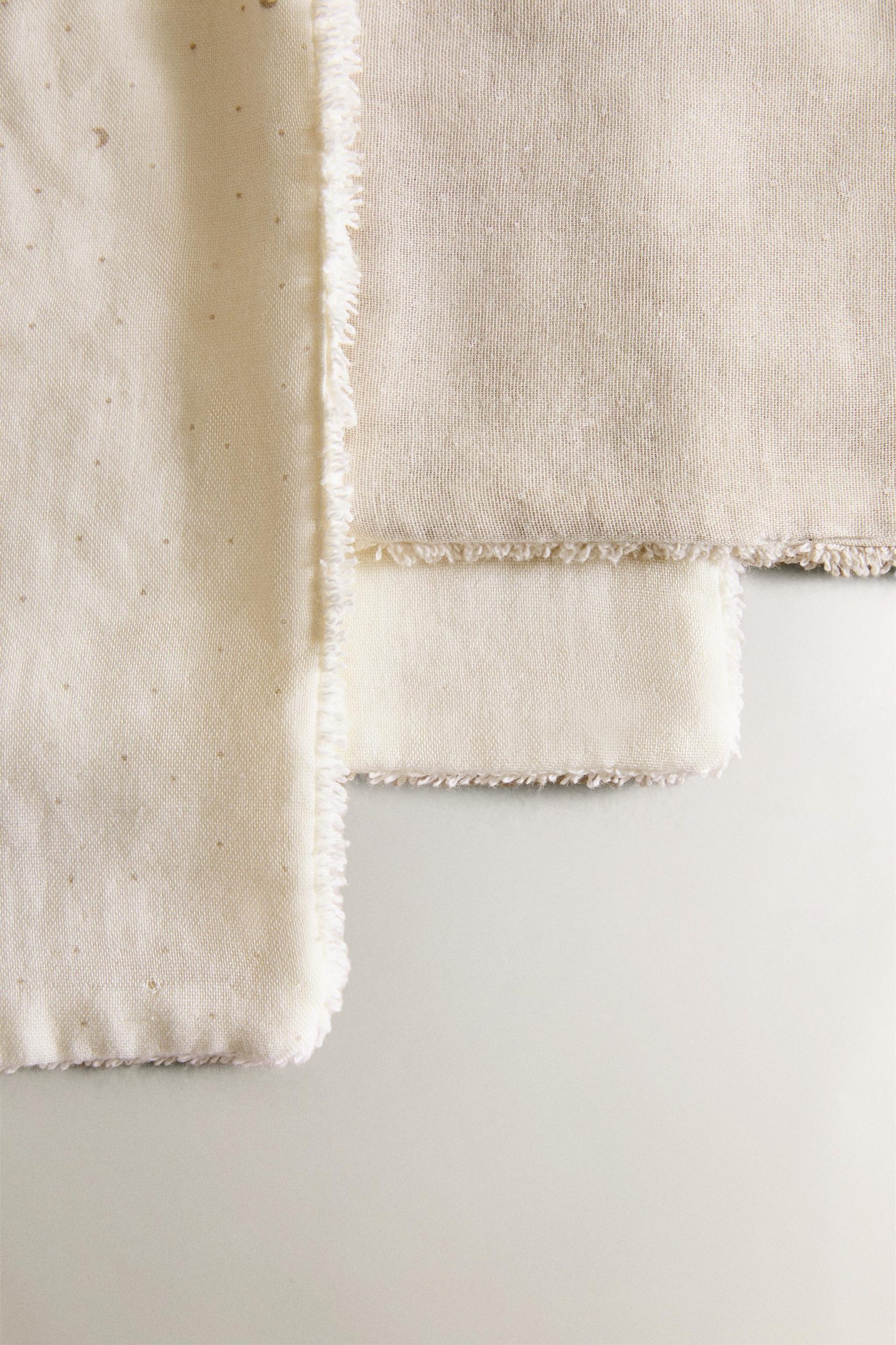 • Kıvırcık pamuk ve muslin kumaştan üretilmiş mini bebek havluları, ikisi ay desenli, diğeri düz renklidir.