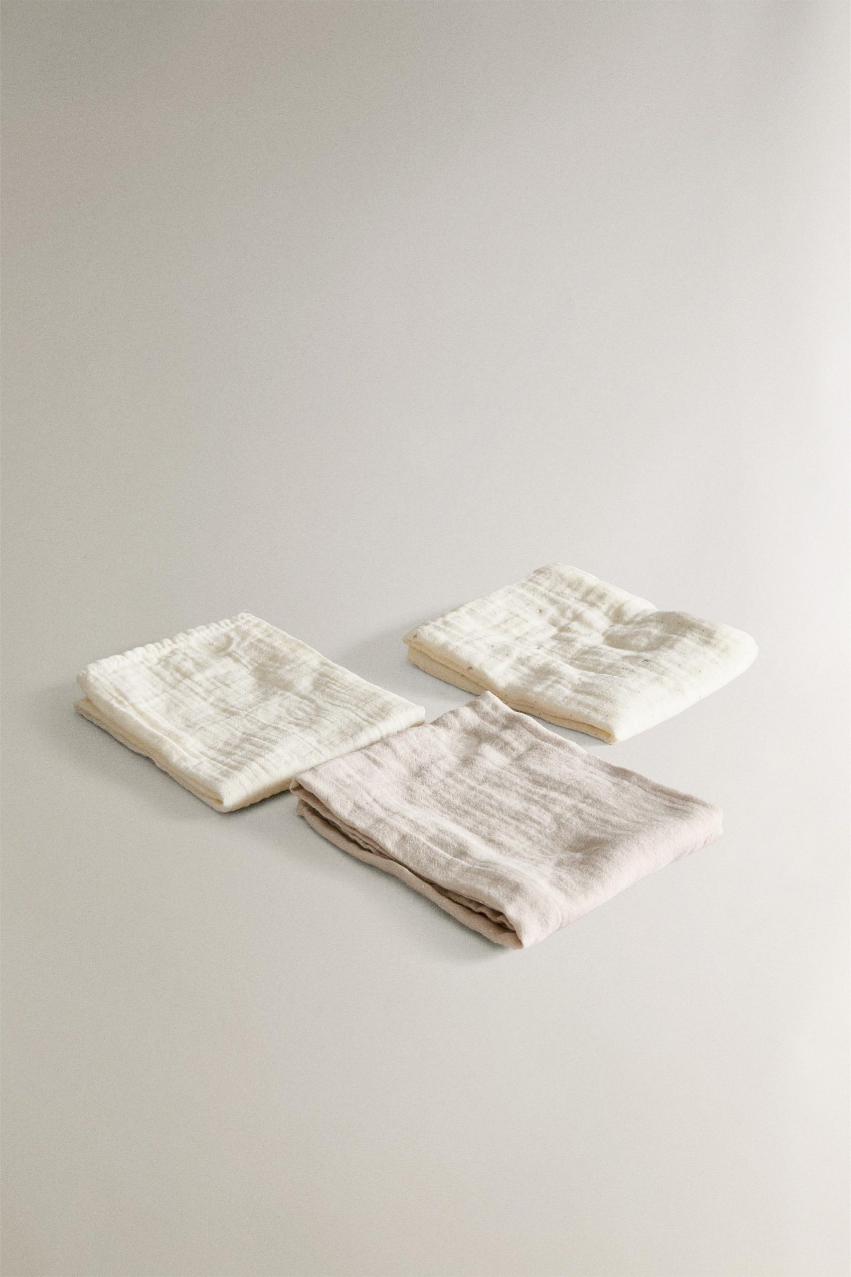 - Pamuklu muslin kumaştan üretilmiş, ikisi ay desenli, diğeri düz renkli bebek müslinleri.