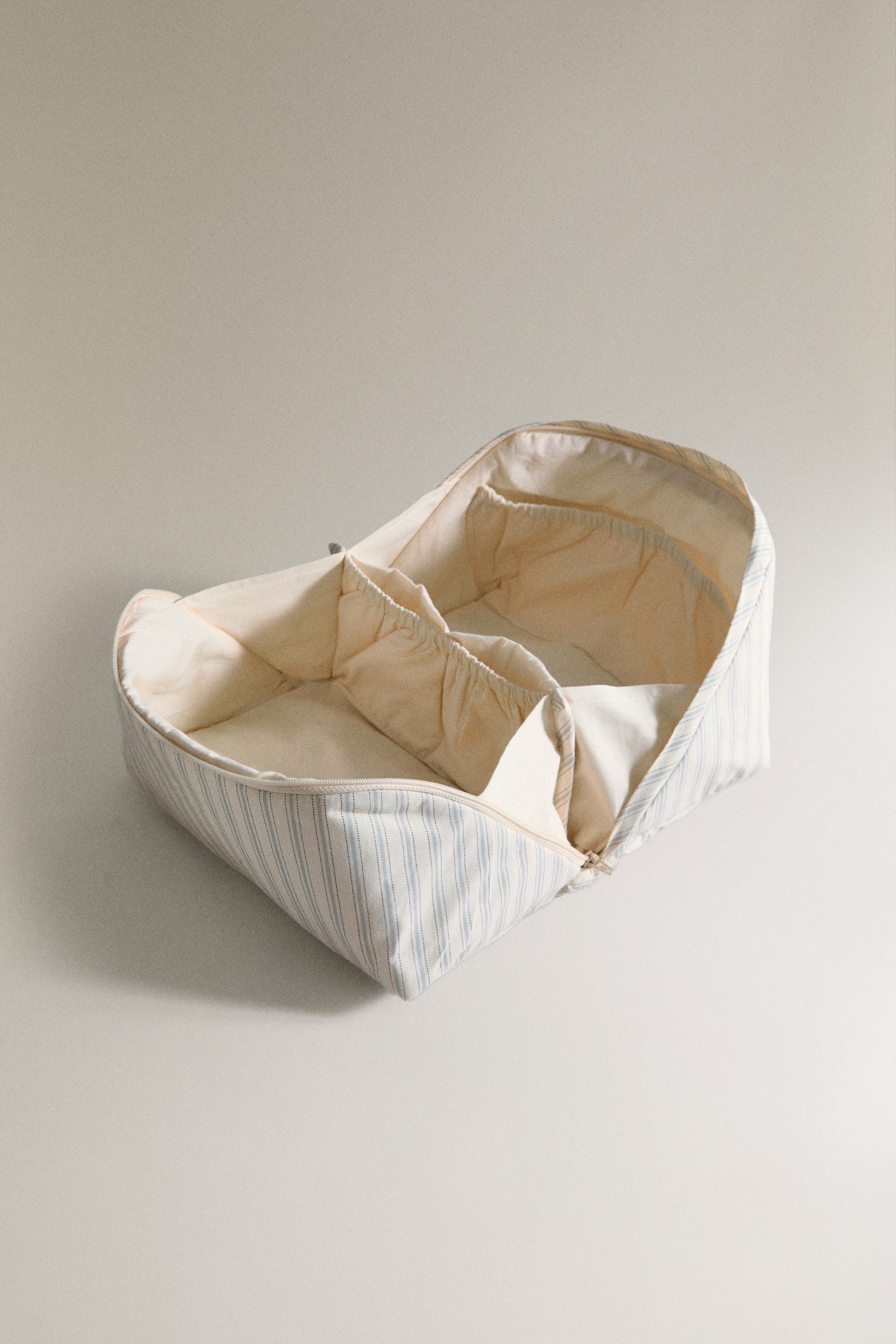 - Çizgili, fermuarlı, pamuklu çocuklar için yıkama çantası. Farklı iç bölmeler.