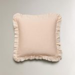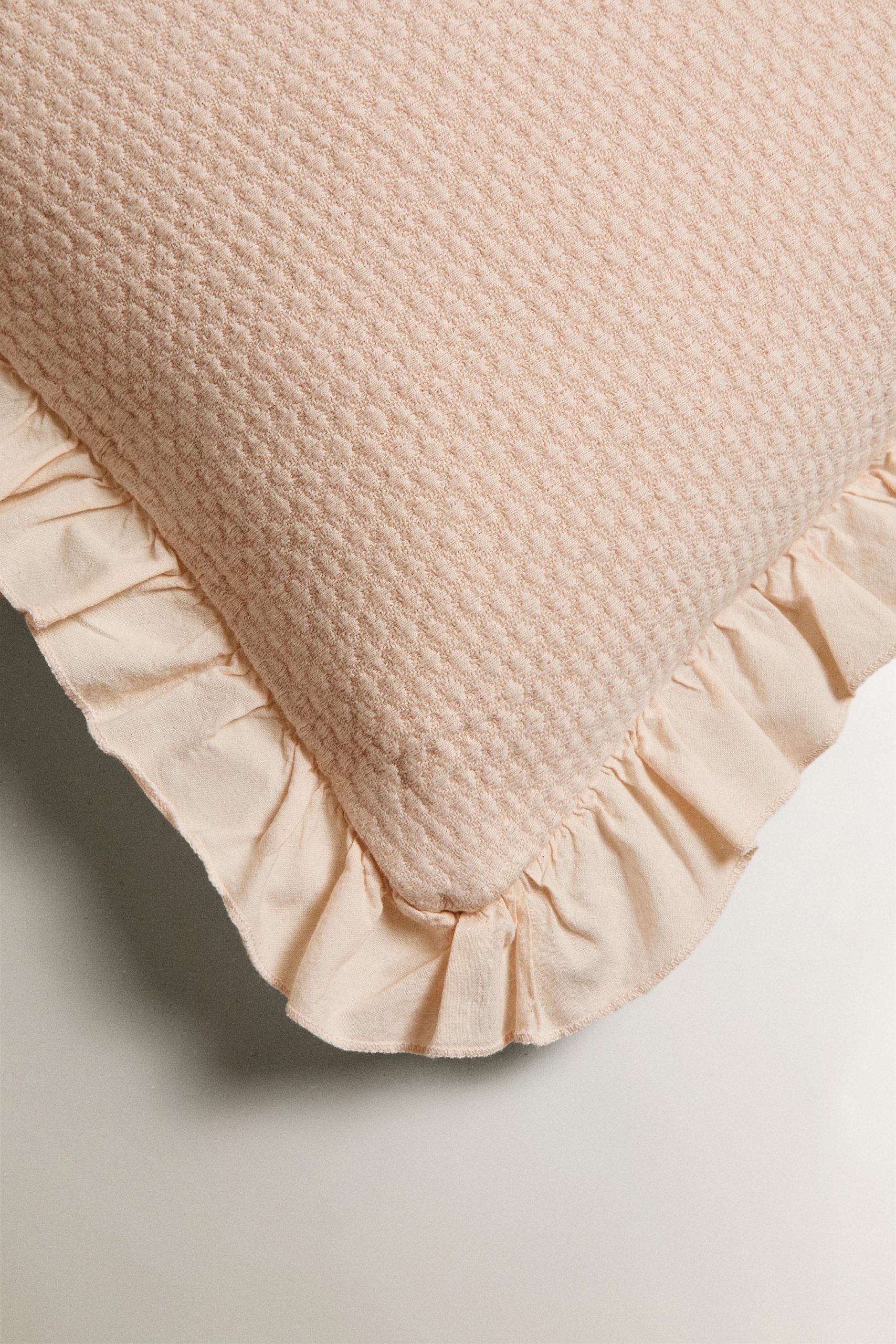 - Kenarları fırfırlı, gofre pamuklu kırlent kılıfı.