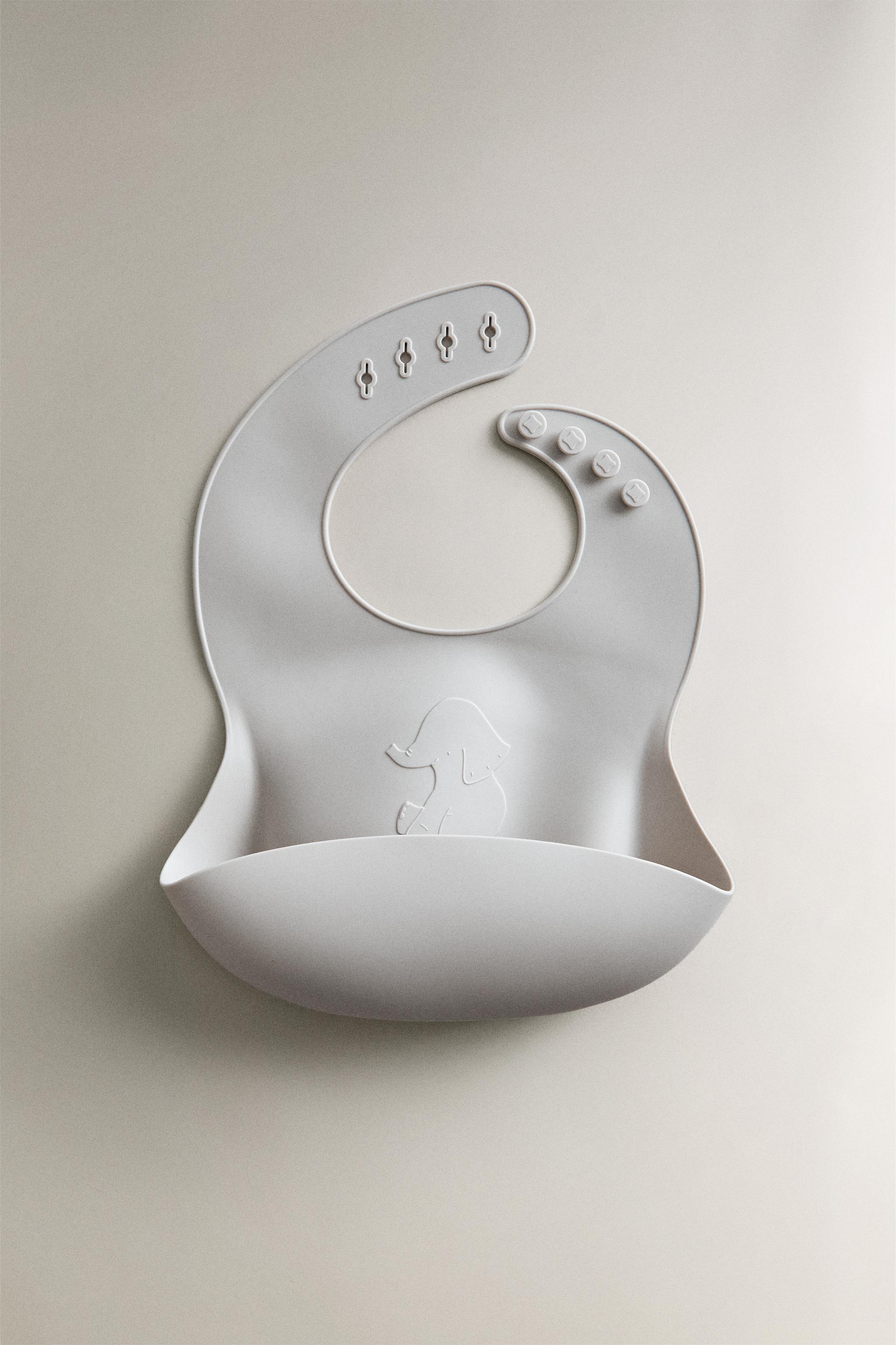 • Silikon malzemeden üretilmiş, fil desenli bebek önlüğü. Ayarlanabilir düğmeleri bulunur.