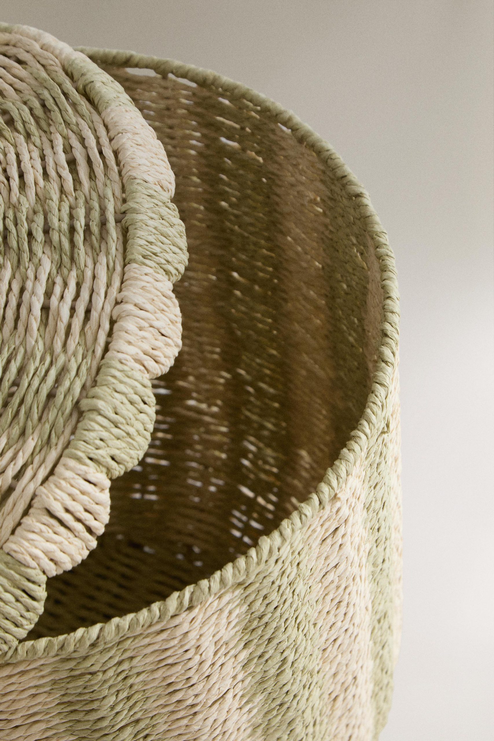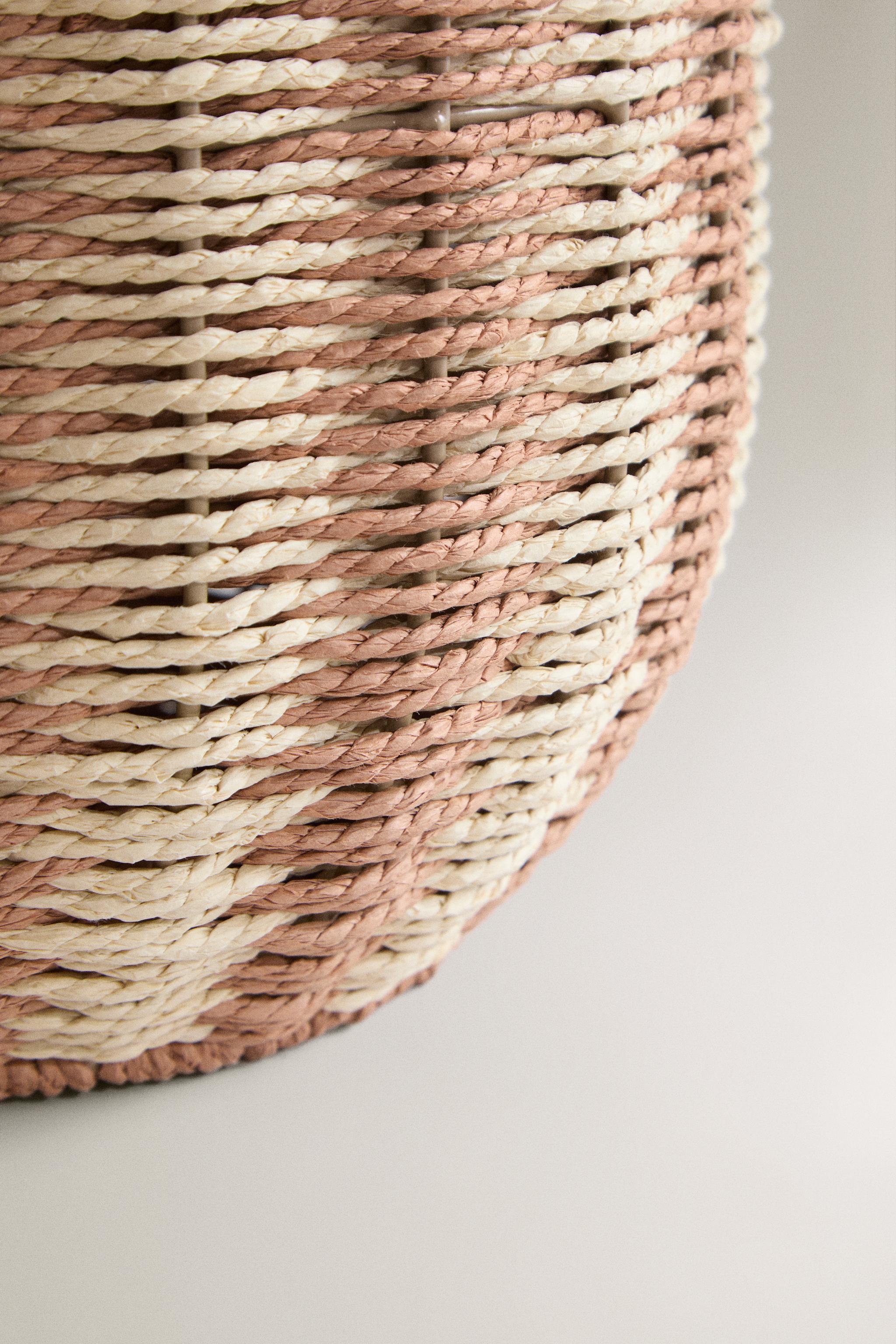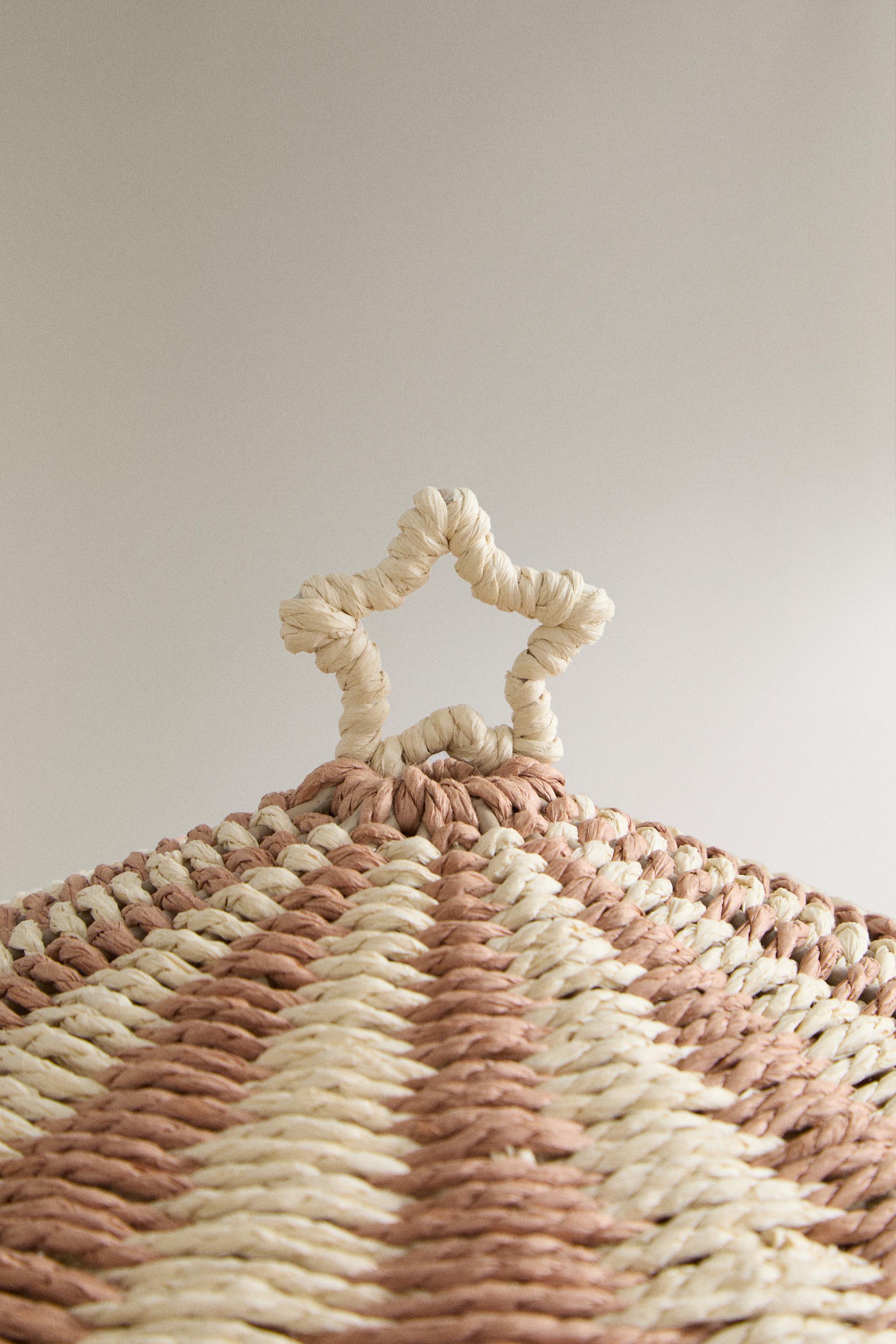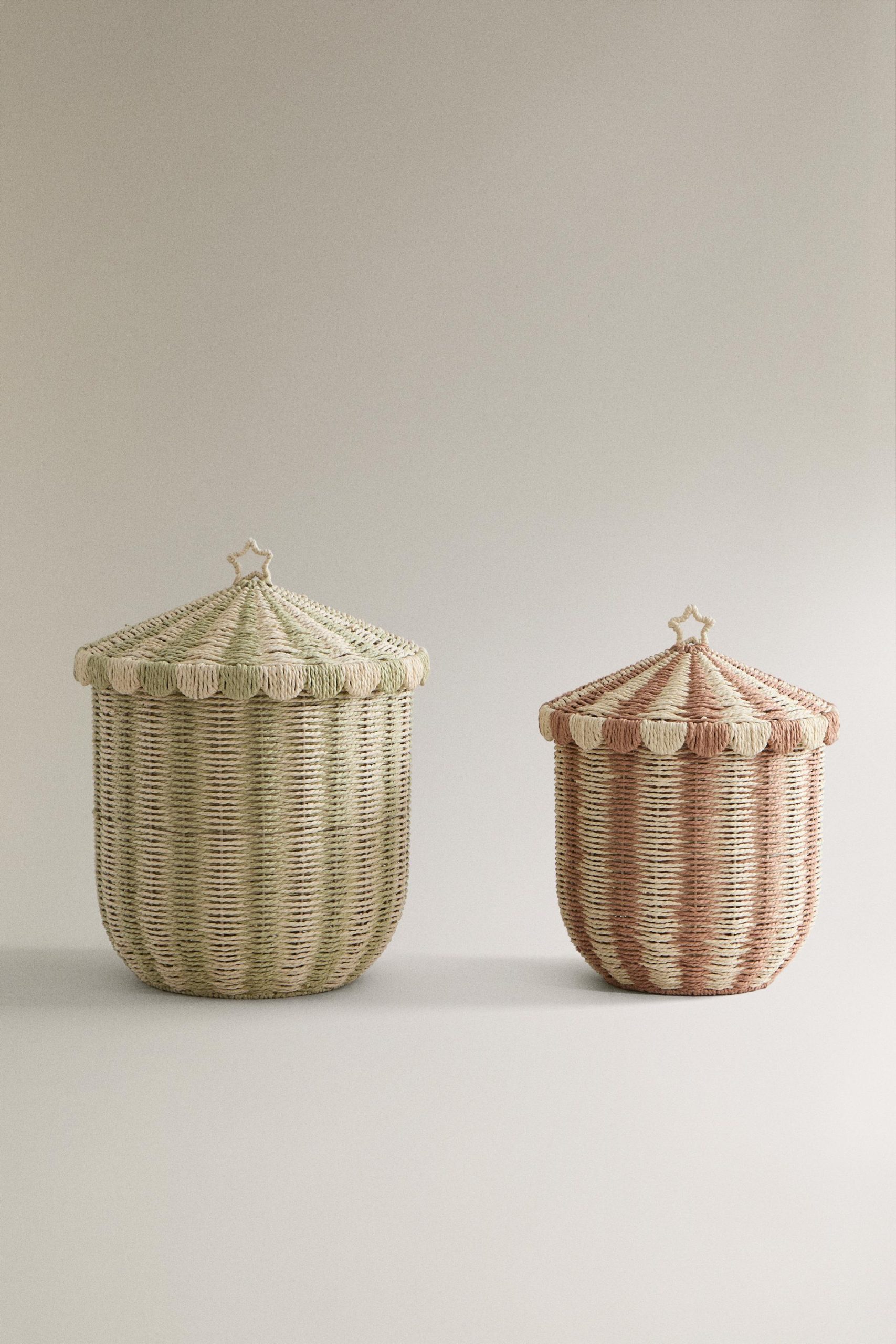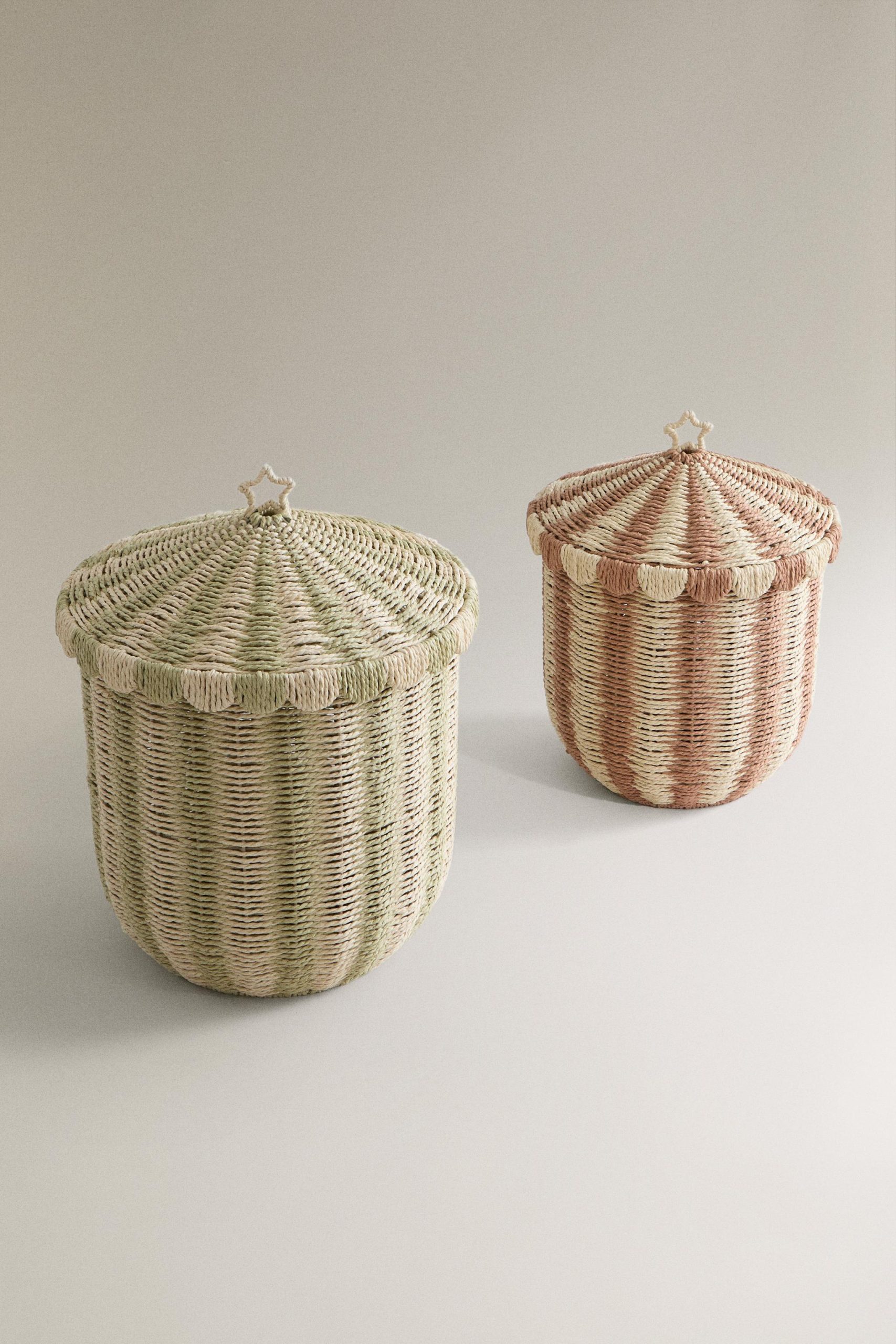 - Çocuklar için kapaklı oyuncak düzenlemek için kağıt örgü sepet. Sirk çadırını andıran çizgili tasarımlı.