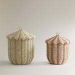 سبد کاغذی با درب برای نظمدهی اسباببازیهای کودکان. طراحی خطدار که یادآور چادر سیرک است.