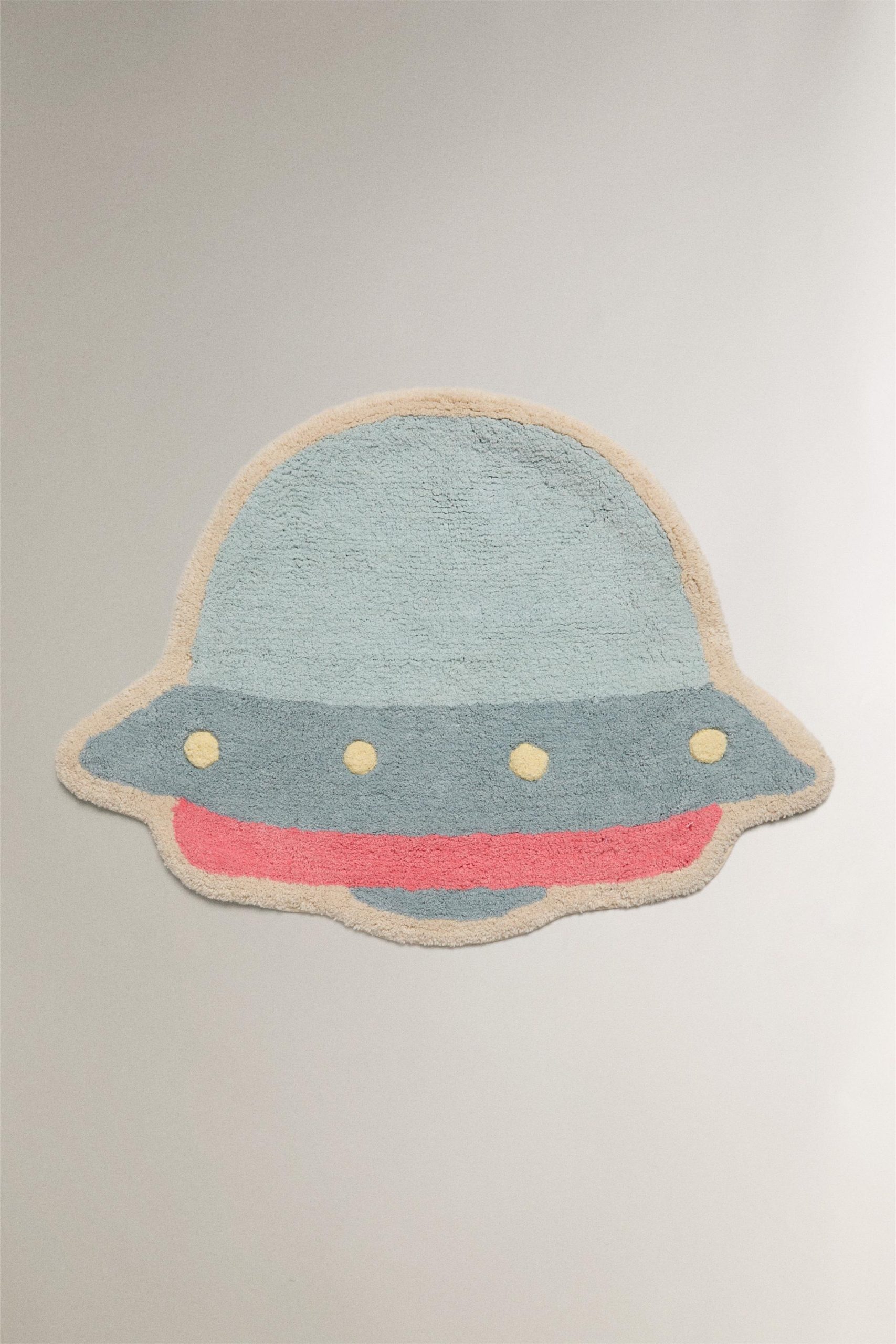 Uçan daire şeklinde, pamuklu banyo paspası.