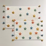 - Çocuklar için renkli püsküllü, kabartmalı yıldızlı, pamuklu banyo paspası.