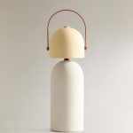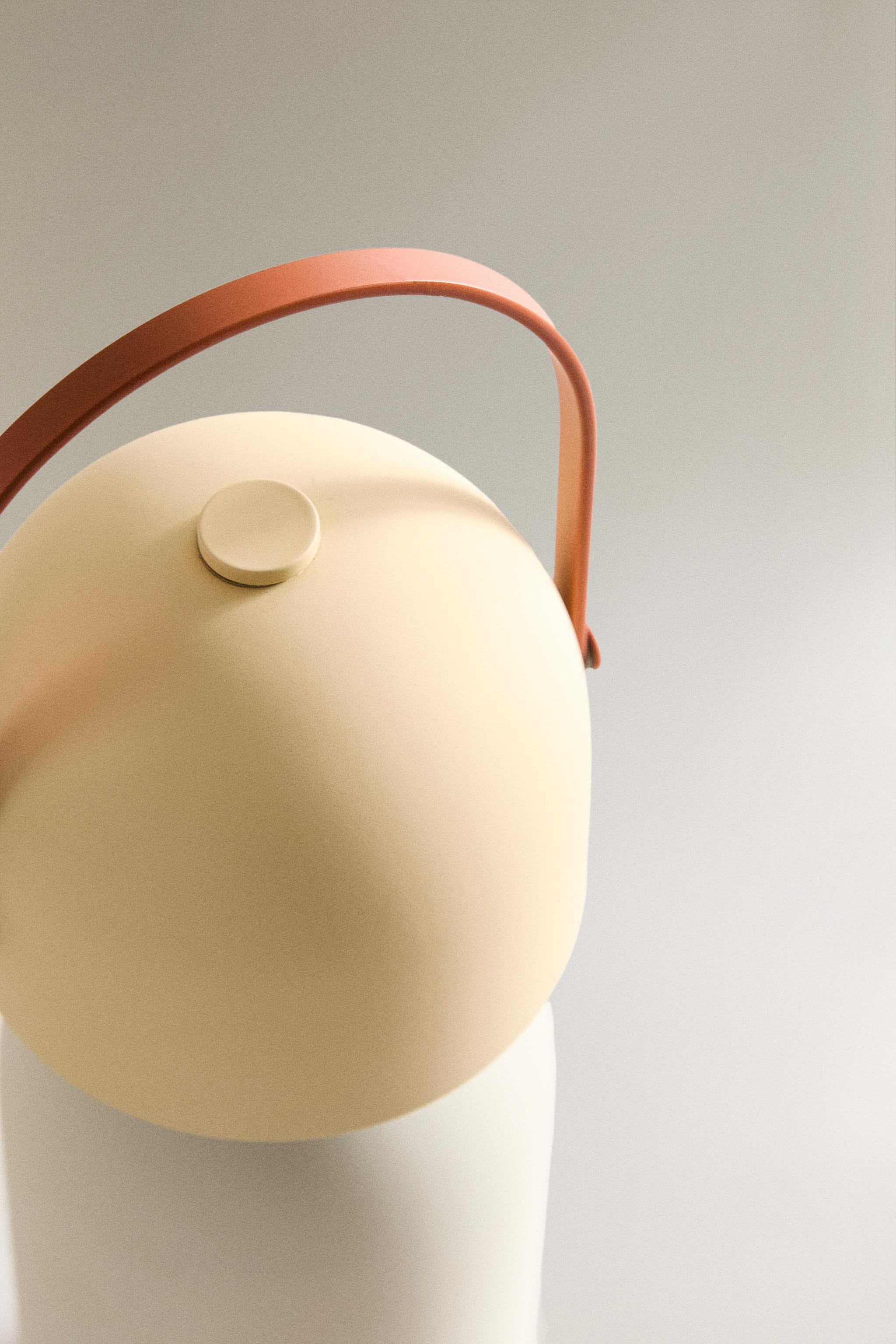 آباژور فلزی با دسته چوبی. با لمس کردن روشن و خاموش میشود و دارای سه شدت نور قابل تنظیم است. این لامپ با ورودی USB قابل شارژ است و به همین دلیل به راحتی میتوان از آن در هر مکان استفاده کرد.