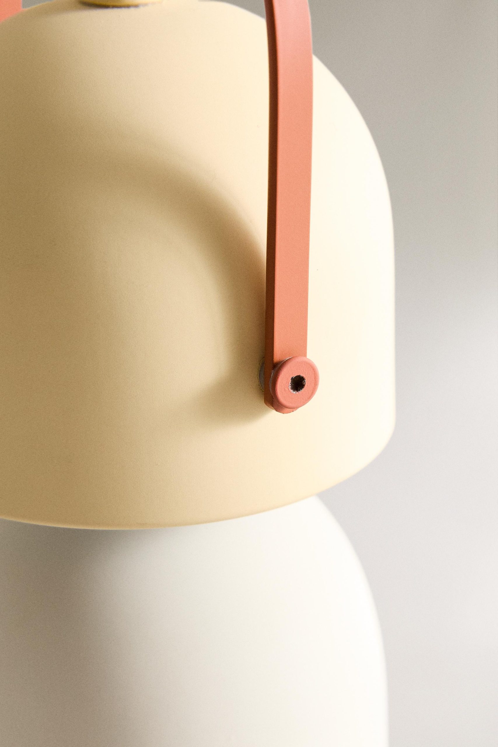 - Metal, saplı abajurı. Üstüne dokunarak açılır ve kapanır ve dokunuşla ayarlanabilir üç ışık yoğunluğunu taşır.