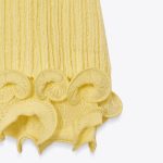 Çift katlı kumaştan üretilmiş top. Bisiklet yaka ve kolsuz. Dalgalı etek ucu.