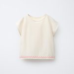 تی‌شرت بدون آستین با یقه بیسیکلت. دارای اپلیک‌های موج‌دار با رنگ متضاد در انتهای لباس. تهیه شده از ۱۰۰٪ پنبه.