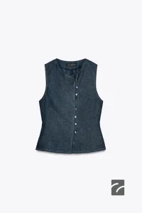 تی‌شرت بدون آستین یقه بیسیکلت پنبه‌ای از برند زارا