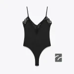 - V yaka, ince askılı body. Aynı tonda dantel aplikeli. Alt kısmı düğme kapamalı.