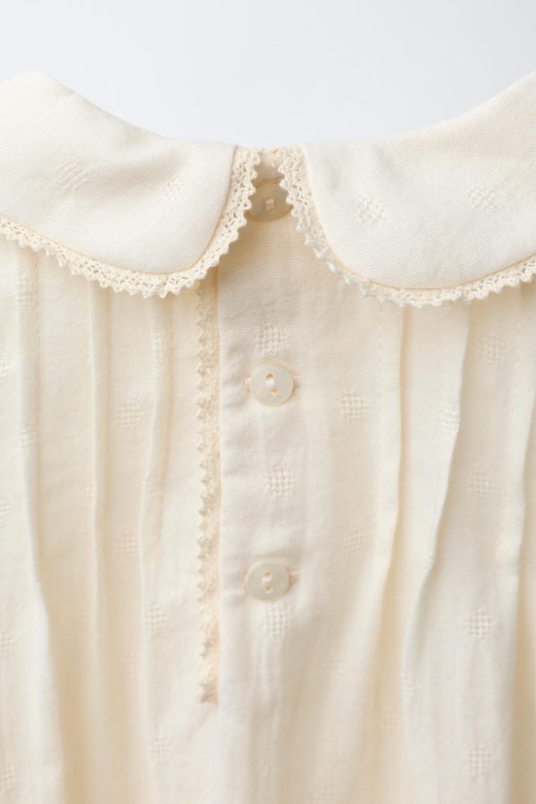 بادی یقهدار و آستینبلند بچگانه. دارای جزئیات دانتل. پشت آن دکمهدار و در پایین دارای بستهشدن مخفی با دکمه است. قسمت سینه با چیندار طراحی شده است.