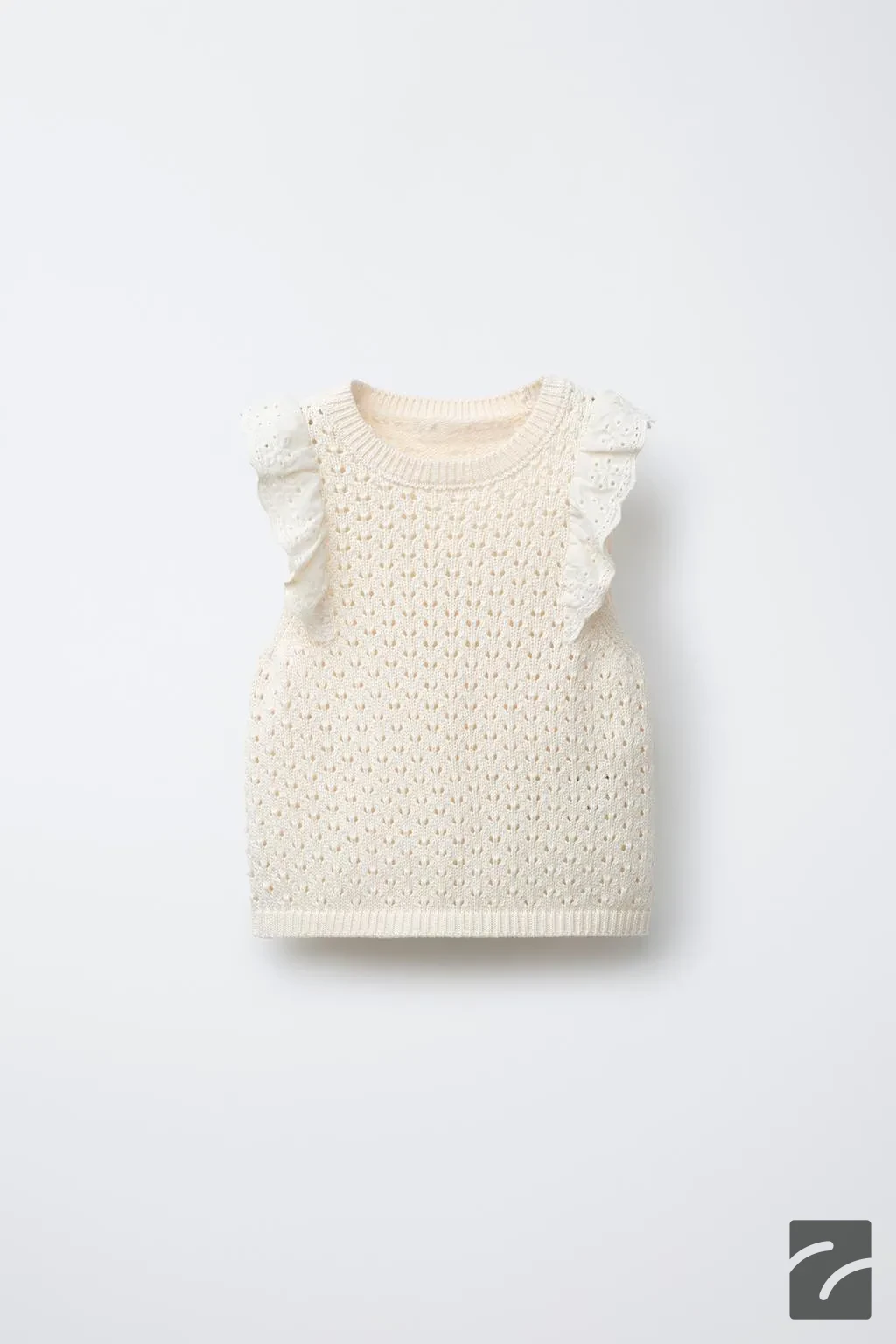 تاپ بافتنی بدون آستین و دانتل از برند زارا