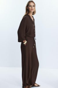 - Elastik belli, triko pantolon. Ajur detaylı.