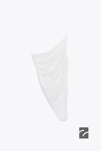 بادی جین بلند با یقه و آستینهای کشی از برند Bebe. دارای دکمه در قسمت یقه و بسته شدن با دکمه فشاری در قسمت پایین. همچنین دارای جیب روی سینه با جزئیات دوخت است.