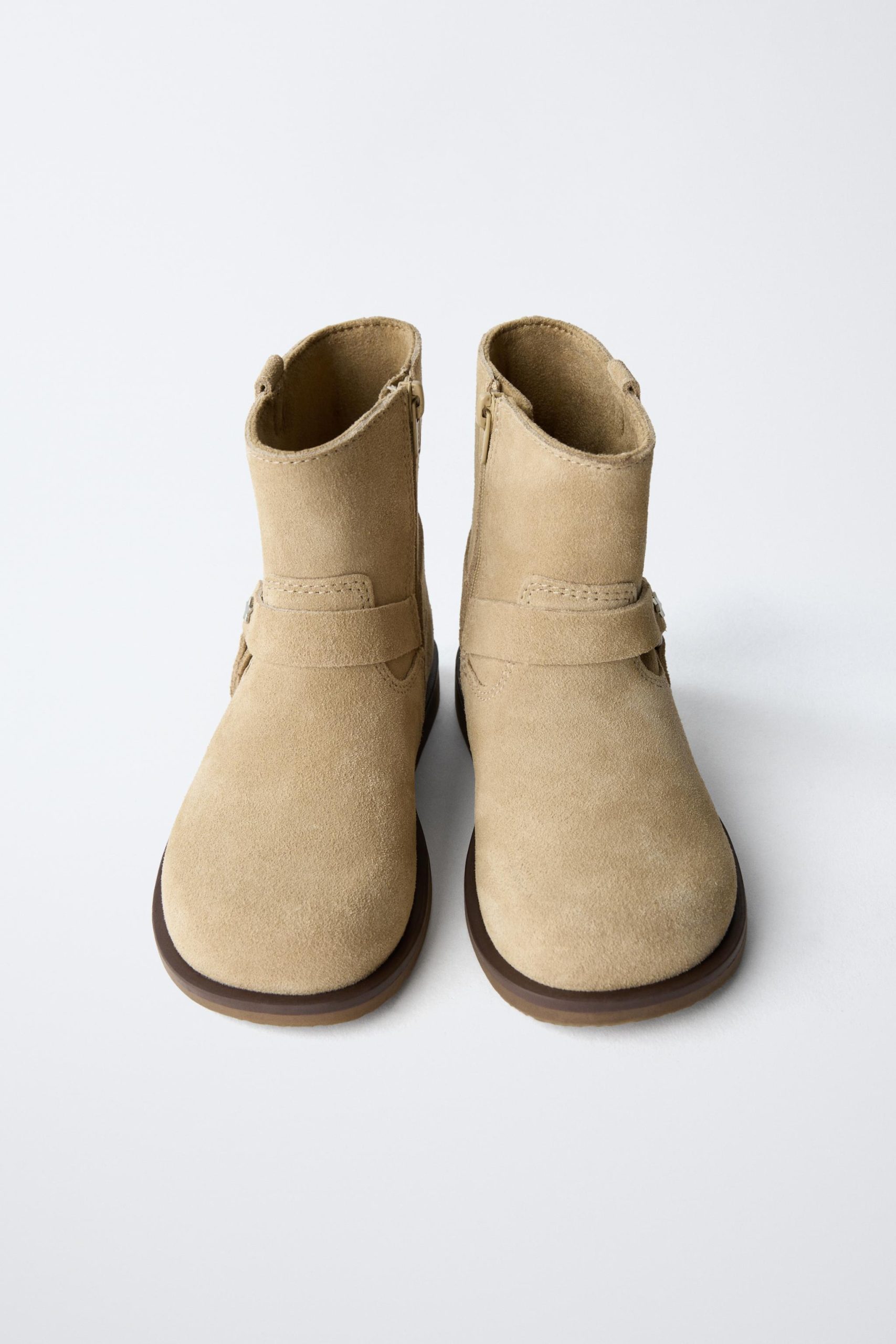 چکمه بایکر چرم گاوی با زیپ کناری از برند زارا - 22 (13.6 cm), بژ روشن (16111630)