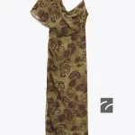 پیراهن یقهدار و آستینهای نامتقارن. دارای جزئیات چین و جمع در کنارهها. آستر داخلی کوتاه. دامن با یقههای جانبی. بسته شدن با زیپ مخفی در درز کناری.